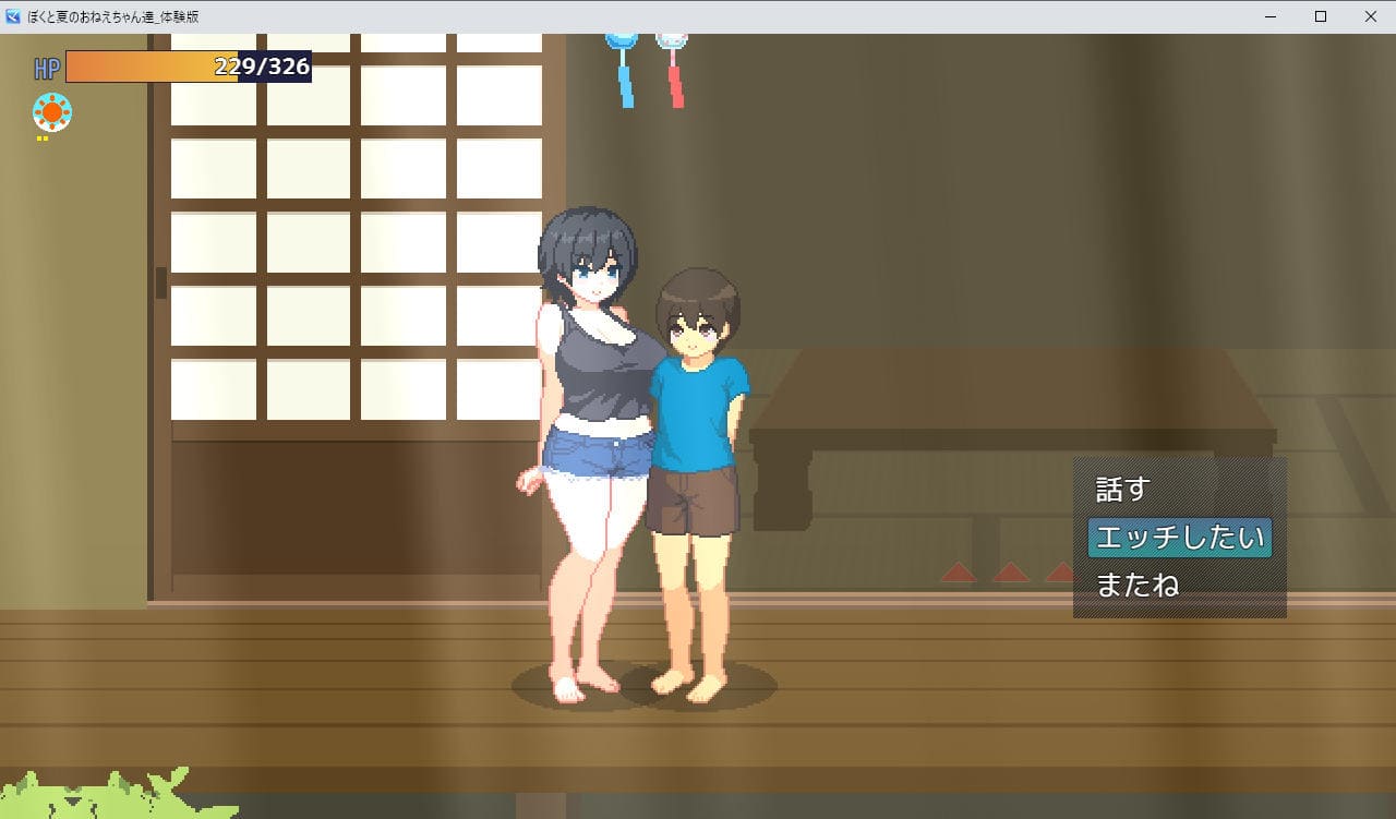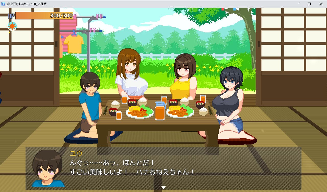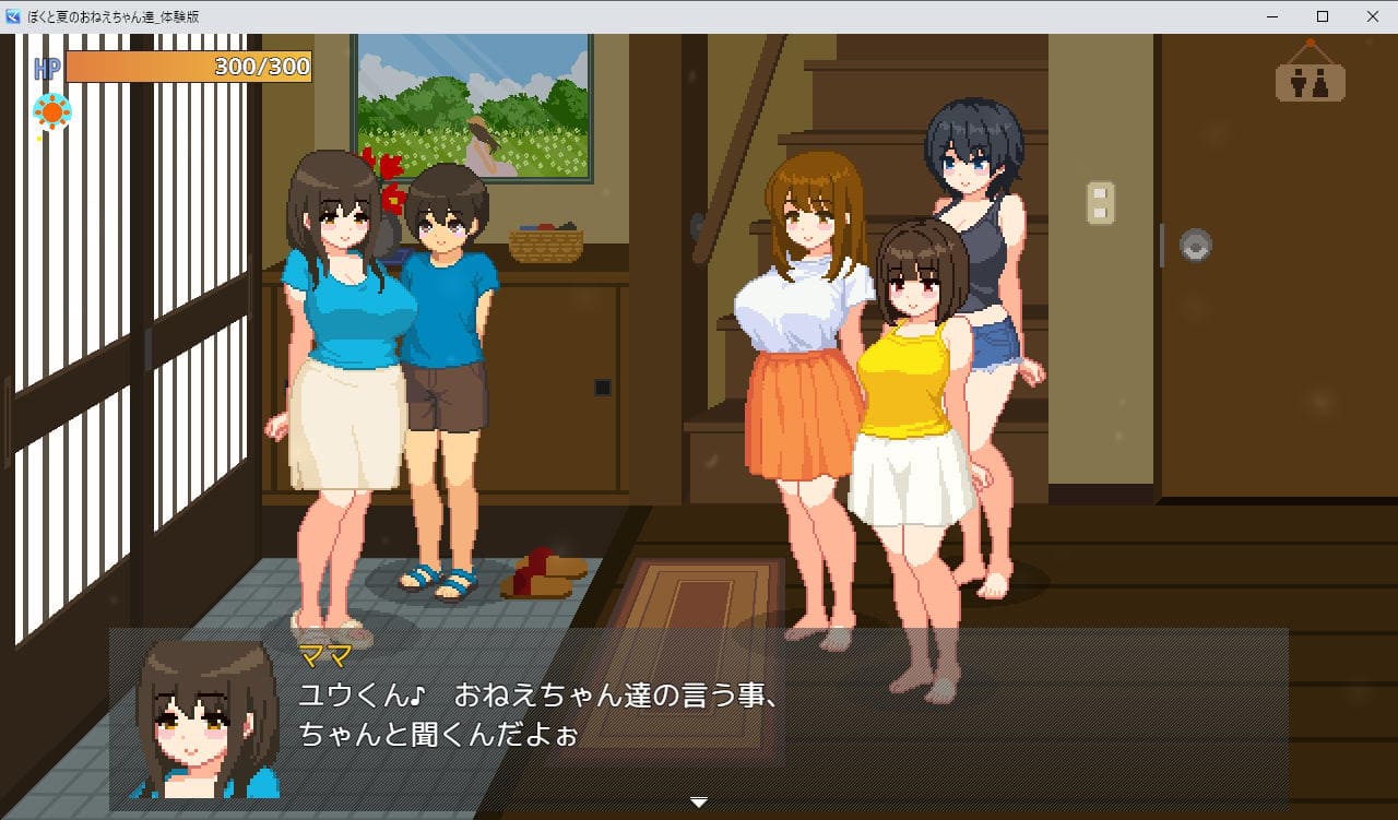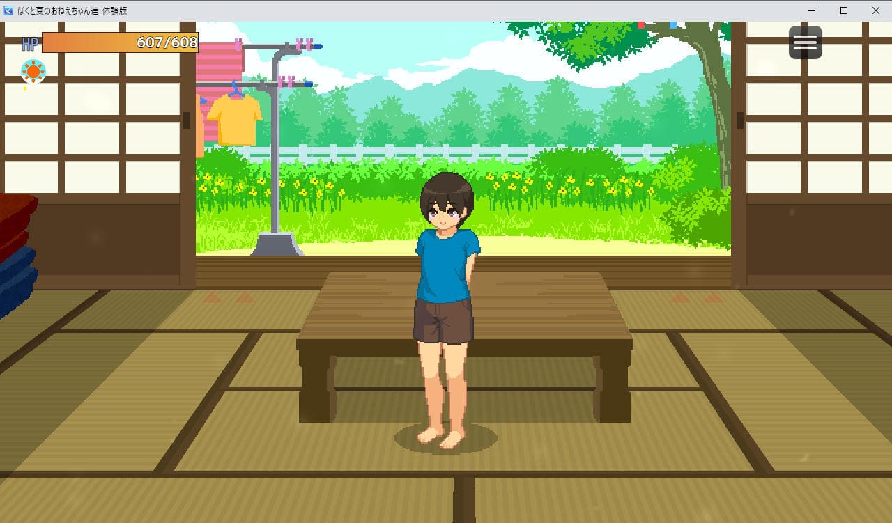 夏の間、ショタ主人公・ユウが親戚三姉妹の家で過ごす、奥行きありサイドビューなMZ製の非戦闘RPG。敢えて言おう、ディーゼル何某さんの夏を冠した作品と同じようなプレイフィーリング。