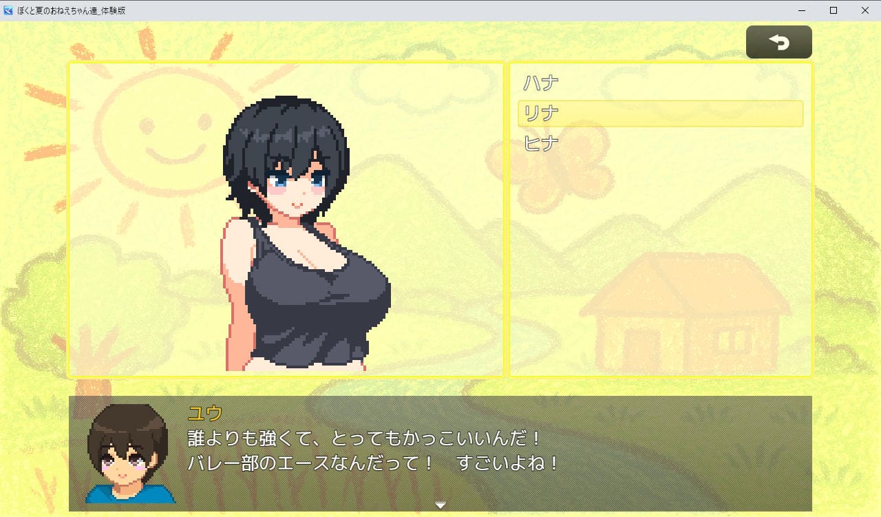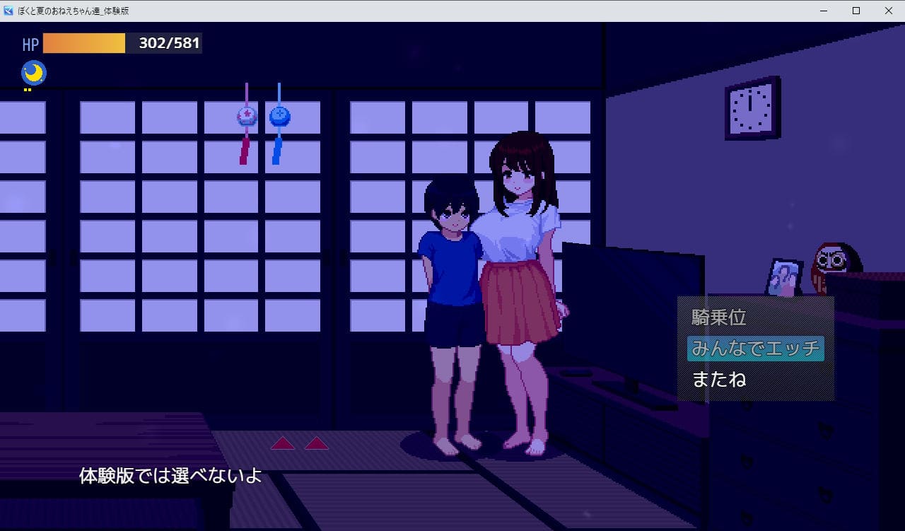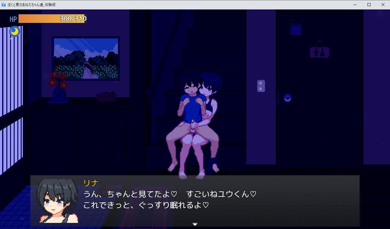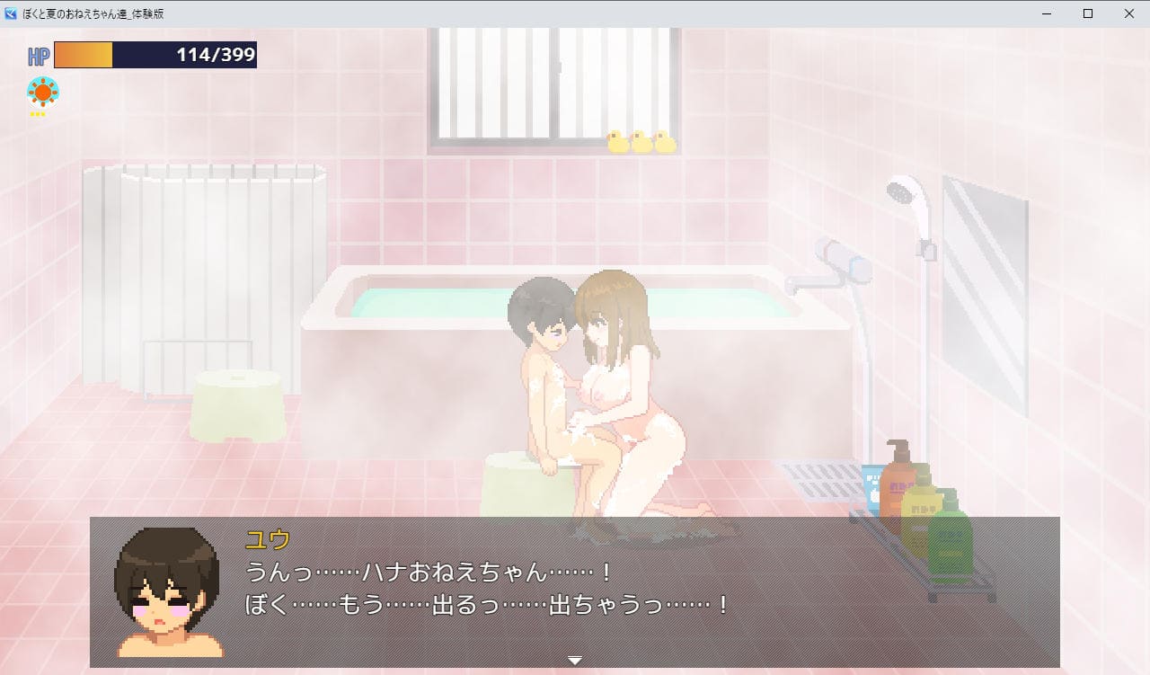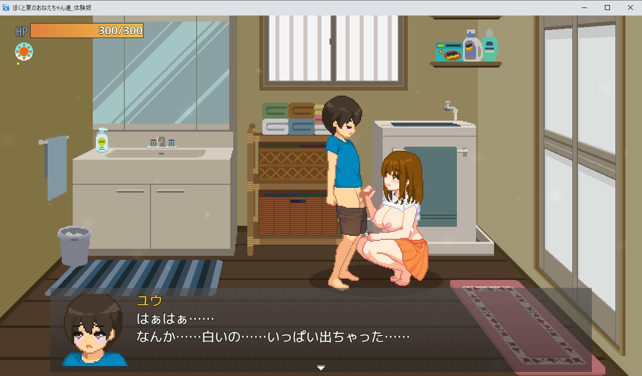 夏の間、ショタ主人公・ユウが親戚三姉妹の家で過ごす、奥行きありサイドビューなMZ製の非戦闘RPG。敢えて言おう、ディーゼル何某さんの夏を冠した作品と同じようなプレイフィーリング。