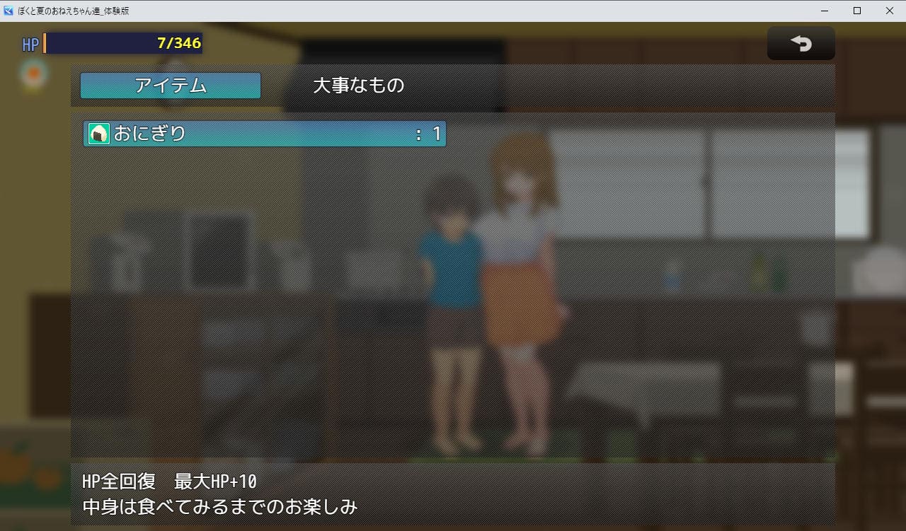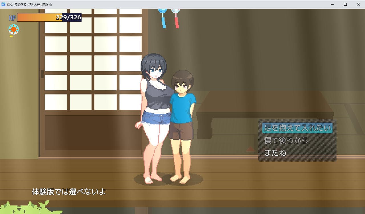 こんな感じで体験版では家の中だけを探索できるが、製品版では外に出て駄菓子屋や神社などなどのマップ多数。シスターズヒントを聞く限り「虫捕り」要素あり、網を使えば一度にたくさんとれるとか。捕った虫は駄菓子屋で売れるそうだ。そもそもお金を何に使うのかピンとこないが、少なくとも虫捕り網などを駄菓子屋で購入できるアイテムがあるのだろう。