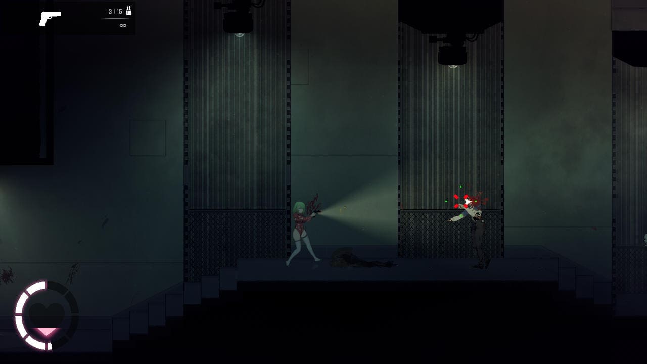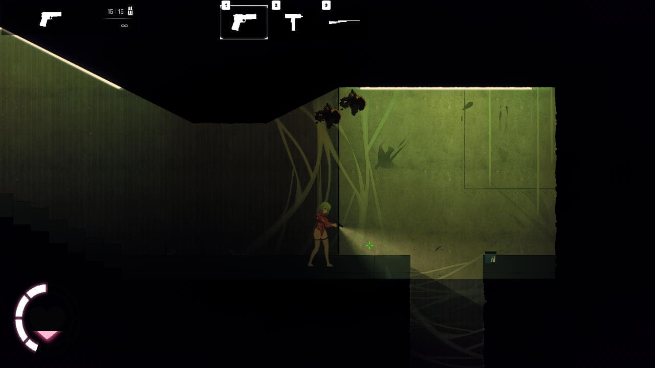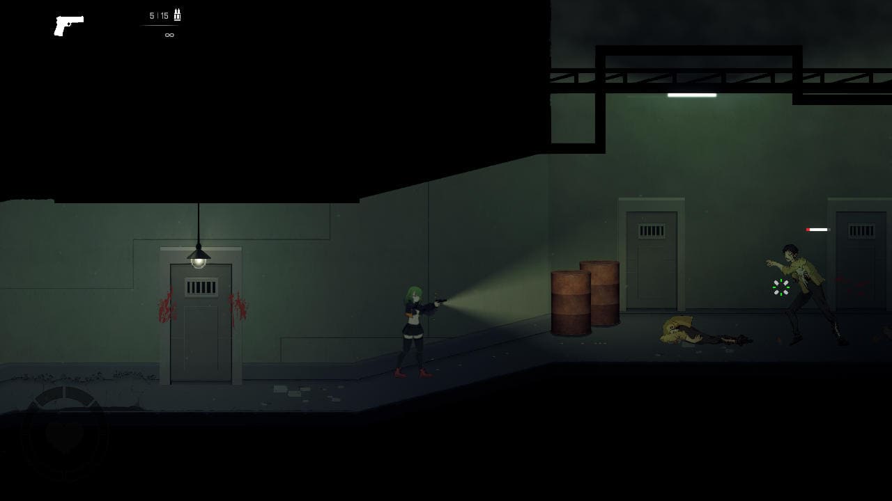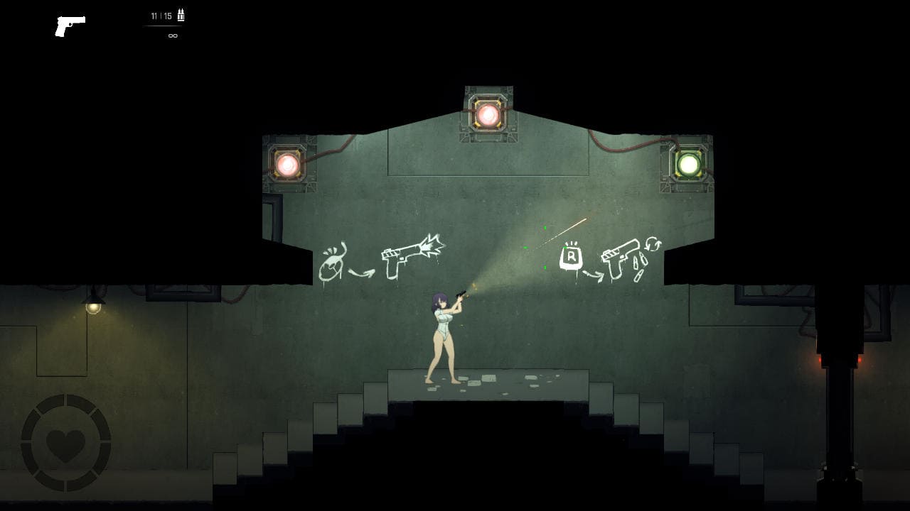 施設の中で1人目覚めた女主人公が、13種の銃器を使いこなしクリーチャーが徘徊する6つのエリアを踏破する、Unity製の横スクガンシューティングACT。ゲーム画面は基本薄暗く、若干の探索要素も相まってホラー味があるが、ジャンプスケアのようなビックリギミックはない。敵に迫られてドキドキはするが。