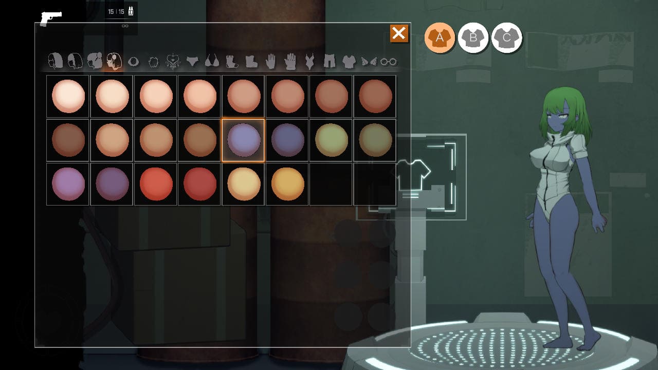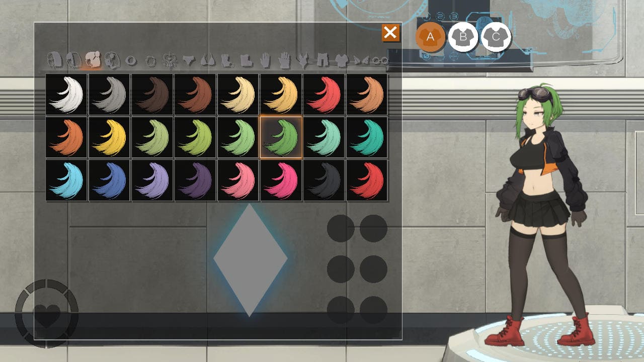 ▲体験版範囲でも別人レベルにカスタムできる。お気に入りコーディネートはシャツアイコンA・B・Cに3つ登録できる