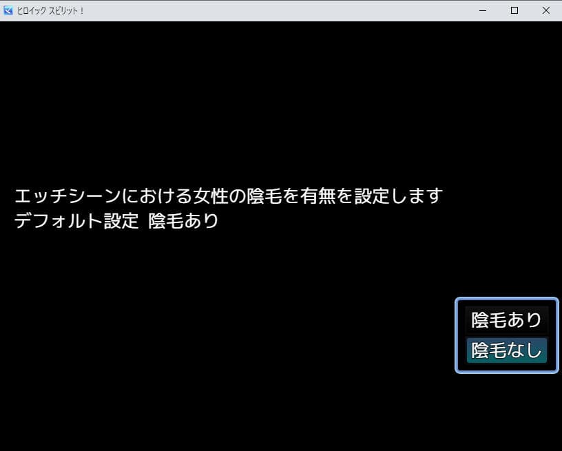 ▲続いて陰毛有り無し設定。我輩はパイパン連合所属ゆえ陰毛無しで頼む。どちらもあとから変更可