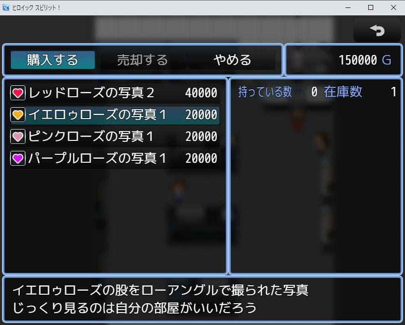 ブロマイドを購入すると彼女達との戦闘に役立つ情報を入手できるため購入するしかない! という建前で購入するが、自宅ではそのブロマイドを使ってオナニーが可能になる。