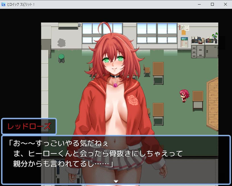 ▲そこまでだレッドローズ! 学生を悪の道に誘うのはやめろっ!。ちなみにレッドローズ登場時は全身絵を下から舐めるように表示