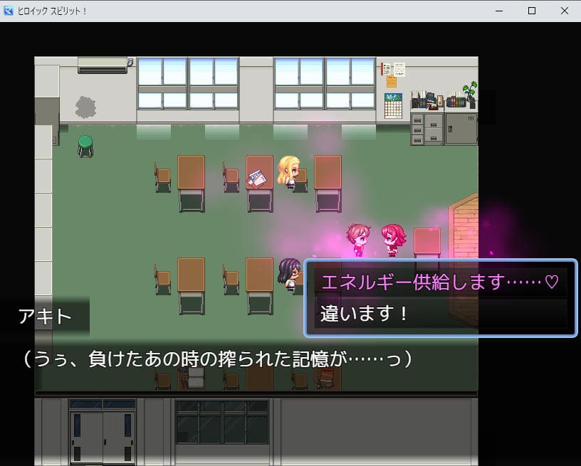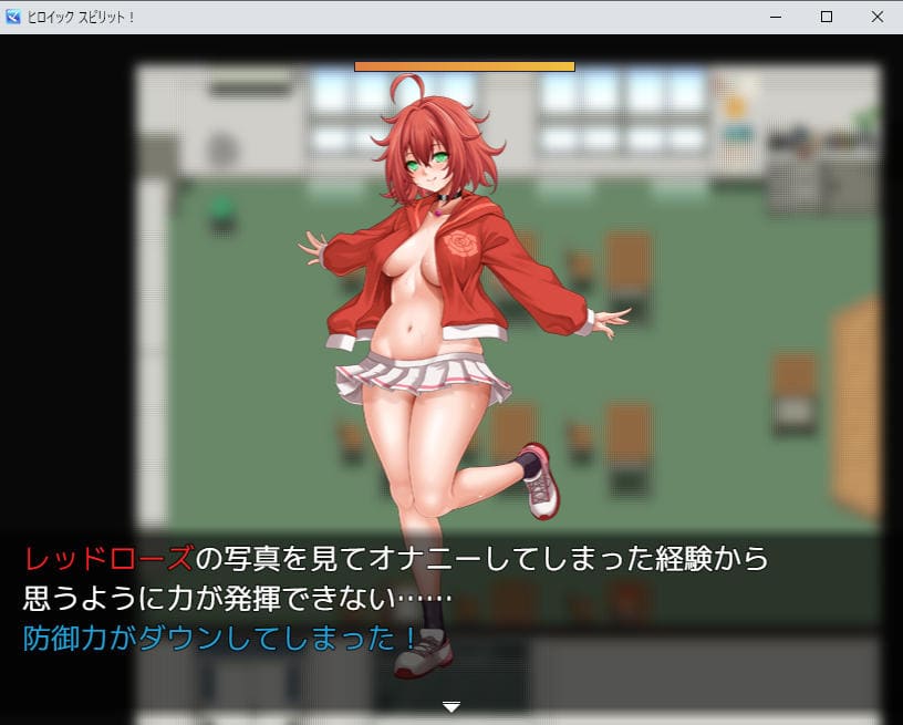 ザコは体当たりでおけ、ボス(幹部)戦のみターン制コマンドバトルとなるのだが、本作の面白いところはエロデバフで弱体化していく女主人公RPGが如く敗北するたびに男主人公が弱体化、それが前提のゲームデザインとなっていること。