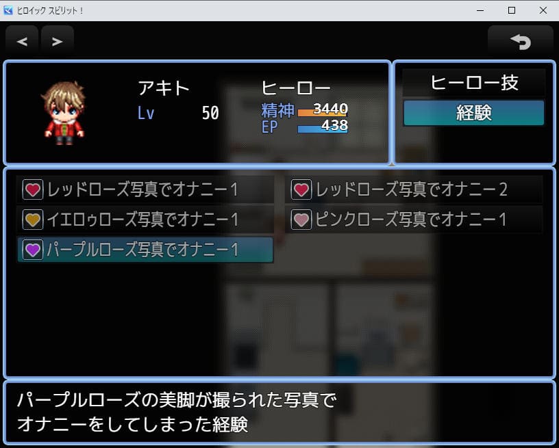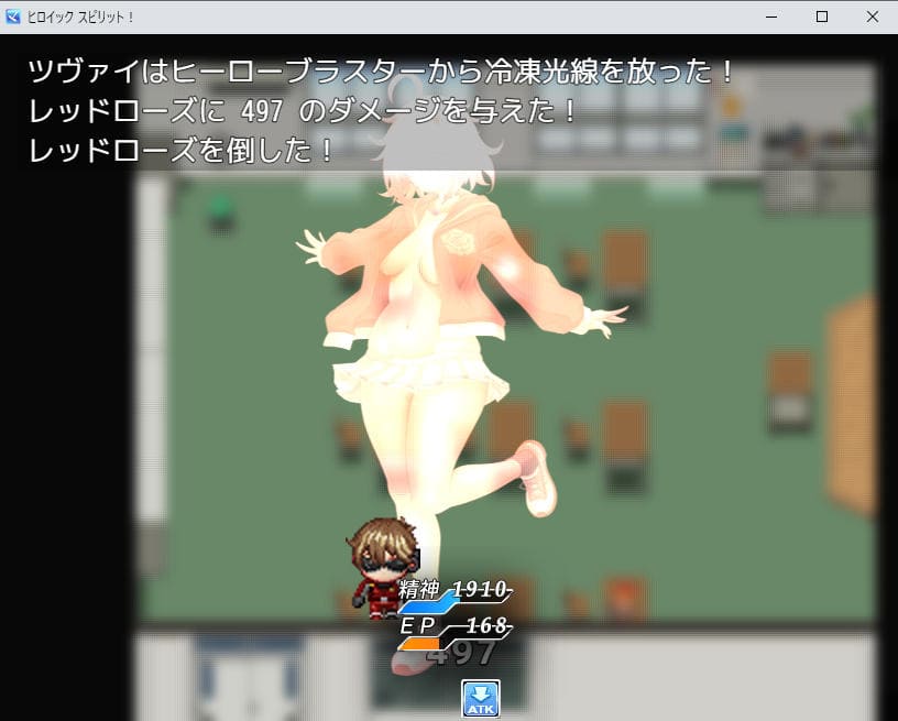 任務先ダンジョンではローズガーデン構成員たちが徘徊しており、冒頭で述べた通り体当たりで瞬殺できるが、棒立ち状態で敵から接触されると↑のようにキスされたりパフパフされ、数回許すと射精してしまう。射精するほどボス戦で攻撃力が下がってしまうペナルティがある。