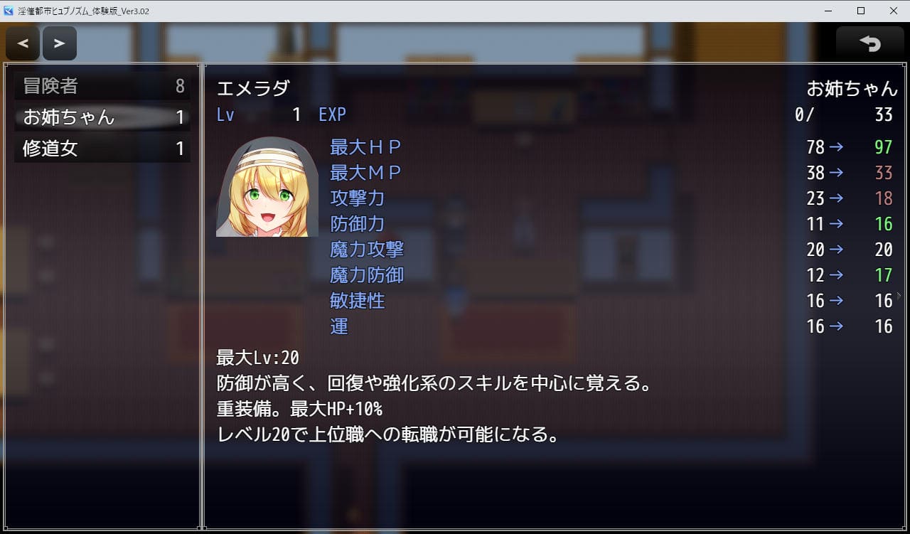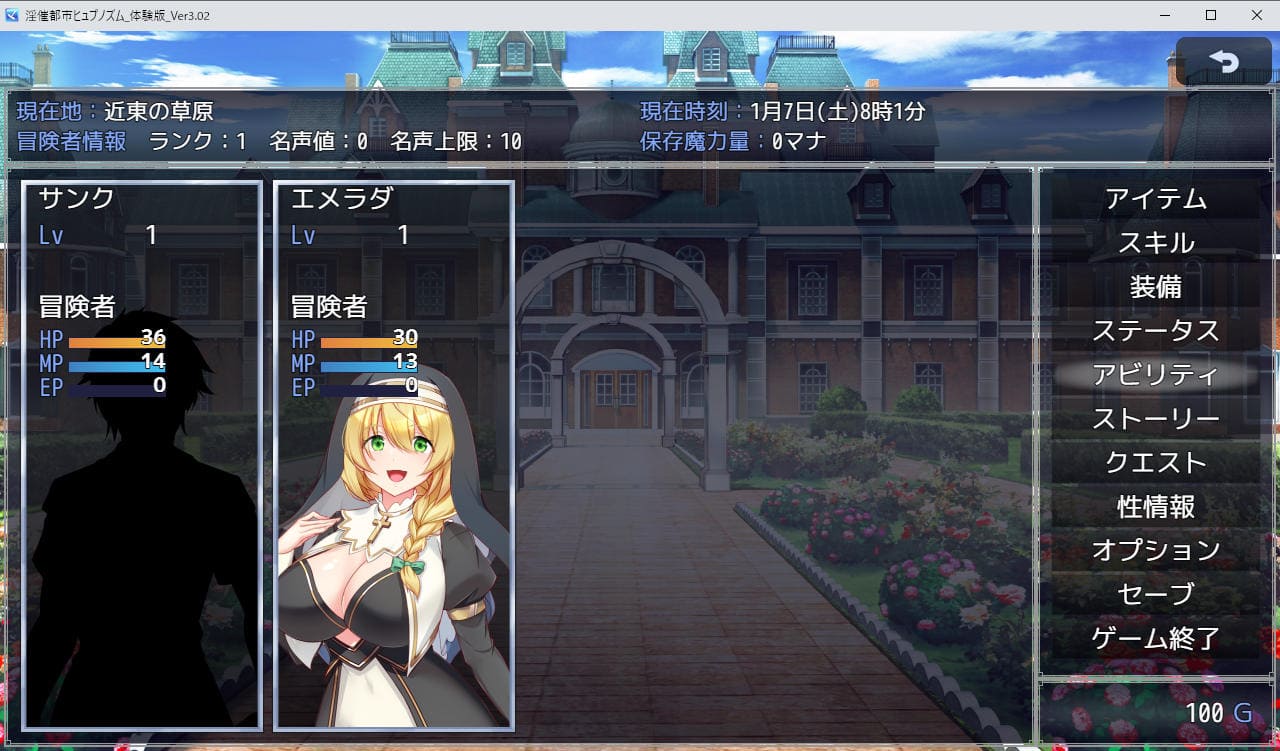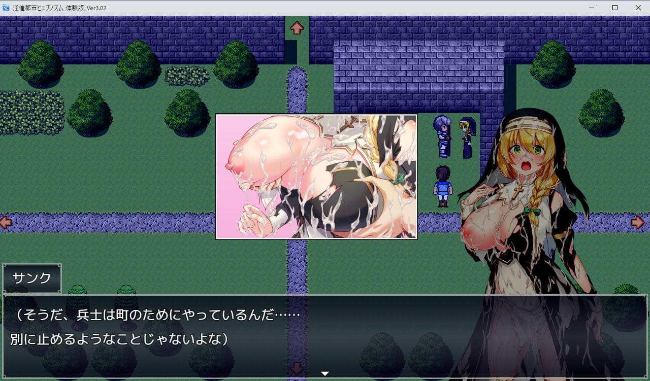 大怪我から復帰した元凄腕冒険者・サンク(名前変更可・セリフあり)が主人公、都市ヒュプノズムを舞台に冒険者として名を上げて一族の復興を目指す、MZ製のNTRRPG。具体的には住民権を得て特定のヒロインと結婚、子だくさんの家庭を築くのが目的となる、のだが。