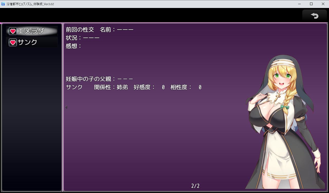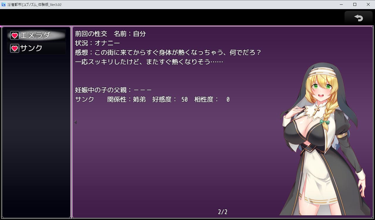 「既婚編」フェーズではサブヒロイン含めた全てのヒロインと関係を持ち、孕ませ、出産させることが可能に。主人公の倫理観スイッチが切り替わったフェーズだな。ある意味「既婚編」こそ本作の醍醐味ともいえるのではなかろうか。