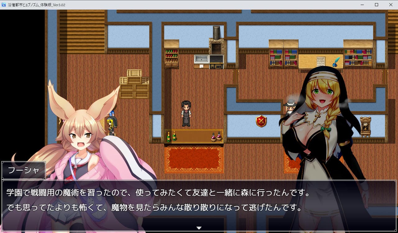 ▲ギルドに報告して冒険者ランクアップ! その直後、森で助けたサブヒロイン・フーシャとのイベントを見て体験版終了となる