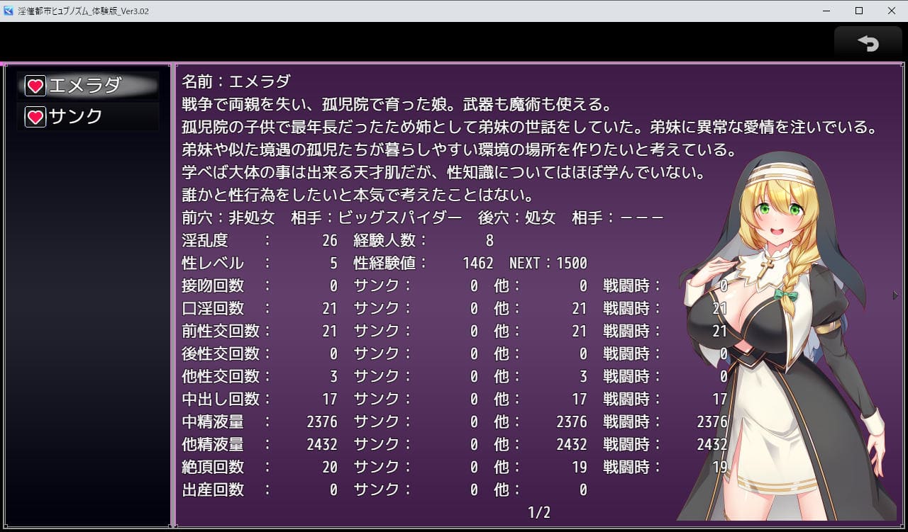 ▲体験版終盤のエメラダのエロステ。製品版では主人公とのエロもそれなりにありそう