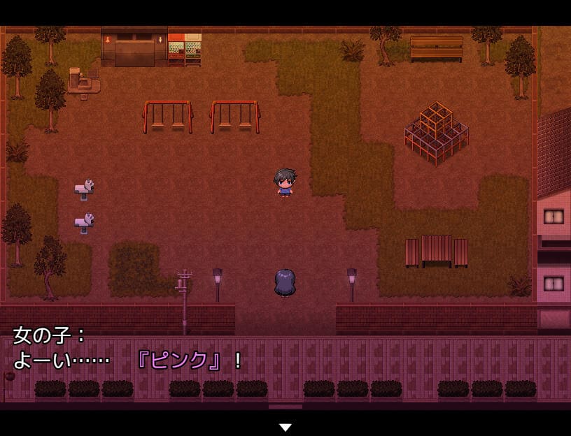 「色鬼」はいわゆる「鬼ごっこ」の亜種、氷鬼とかバナナ鬼(ググったら出てきた)子供の頃に遊んだことがある紳士も多いだろう。鬼が指定した「色」に触れている子は捕まえることができない、というルールをゲームに取り込んだ作品となっている。