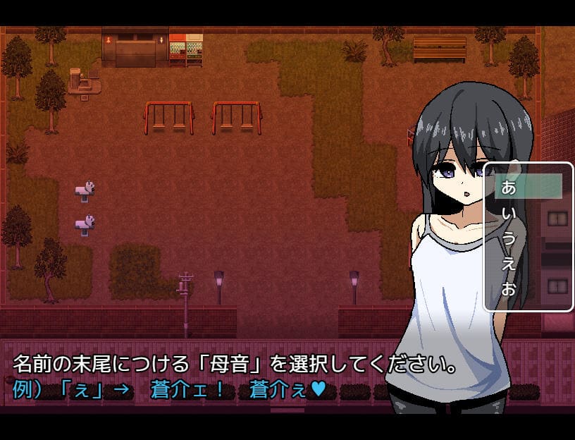 ▲彼女に名前を聞かれ(デフォ 蒼介)入力したあと、末尾につける母音を聞かれる