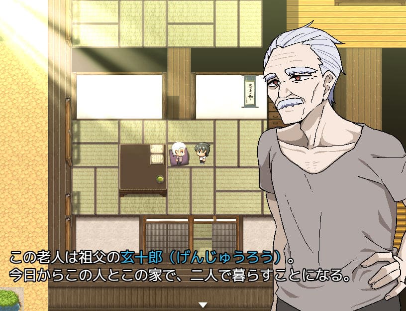 ▲母方の祖父。これからこの家で暮らすが、主人公と祖父の仲は芳しくはない