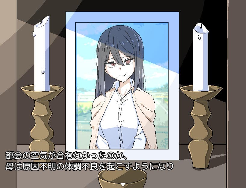 ▲主人公は数年前に母と一緒に都会へ出て、母が亡くなり田舎に帰ってきた。サウンドノベルを彷彿とさせる背景だな