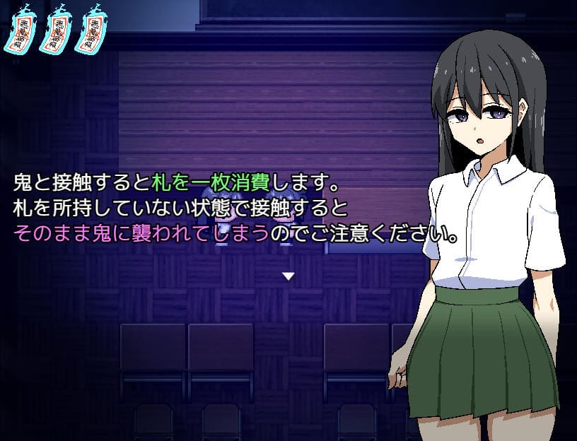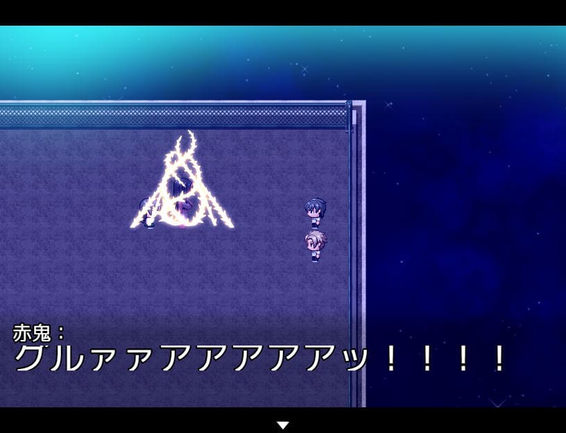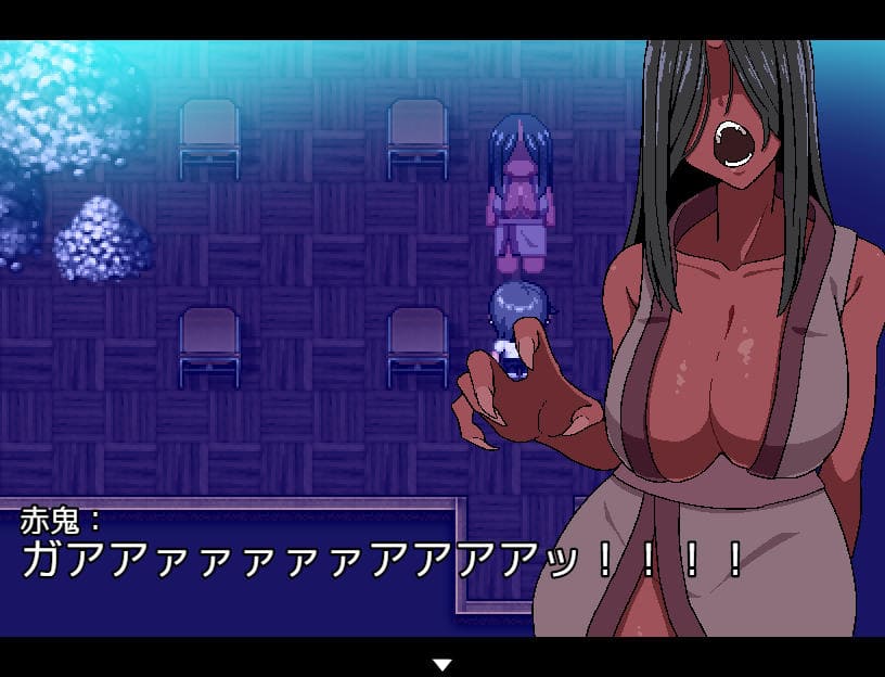 例えば「赤鬼」は主人公が「赤いモノ」に触れている間は主人公を認識できない。青鬼、黄鬼然り。捕まる度に破魔札が減少、ゼロの状態で接触されるとエロシーンを経てGAMEOVER。