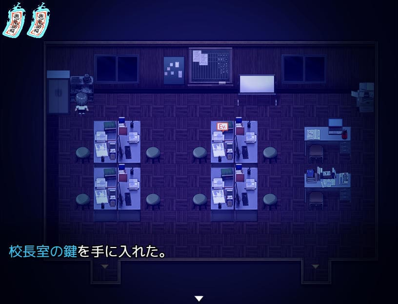 ▲職員室で鍵を入手。フラグにはEVマークやキラキラがあるゆえわかりやすい