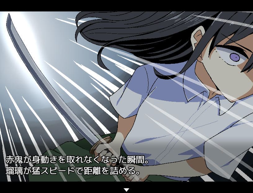 プレイ前はホラー風味探索エロゲかと思ったが、ステルス探索フェーズからのアクションボス戦あり、色鬼ルールにギミックと小粋な演出が効いた作品だった。パッケを見る限り青、黄色、紫、白い鬼もいるようで、それぞれとの探索フェーズ(以降は刀ありかね)+ボス戦が展開されそうだ。何気にストーリーも良さげ、見てきたとおりホラー風味は薄めでジャンプスケア的なのはないゆえ苦手な紳士も安心かと。
