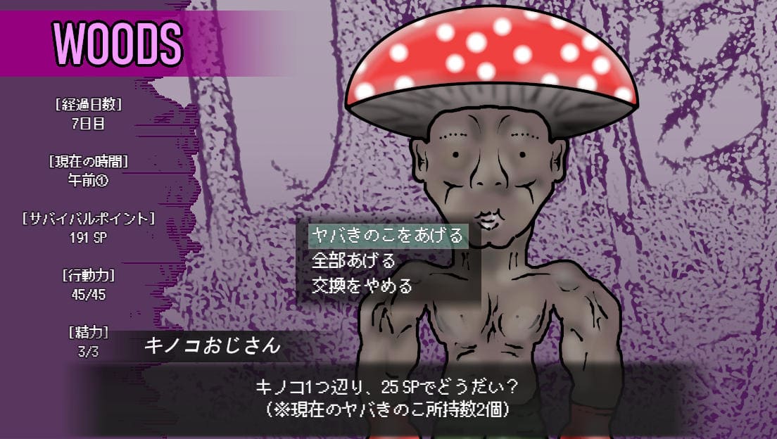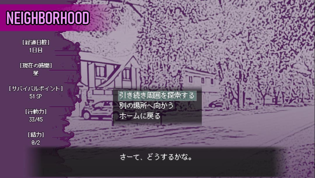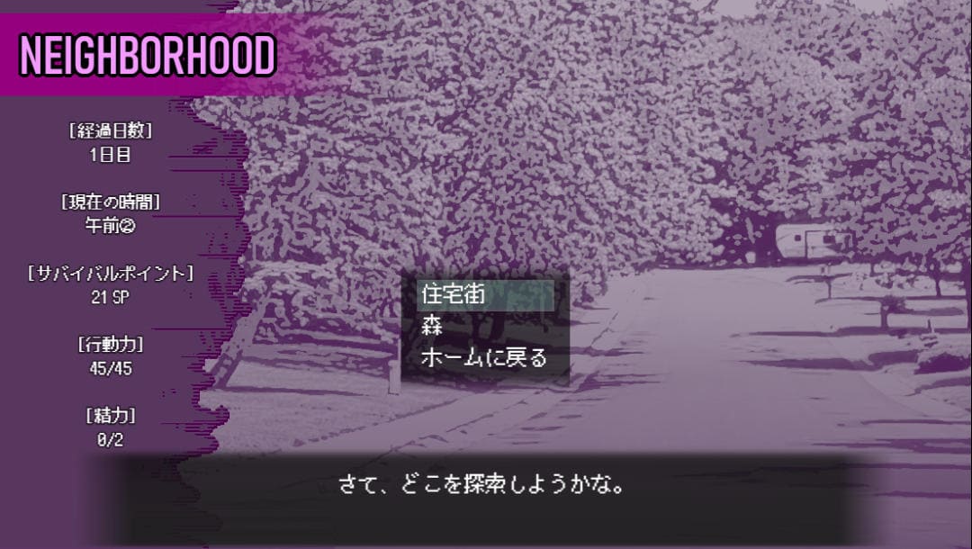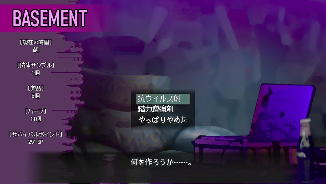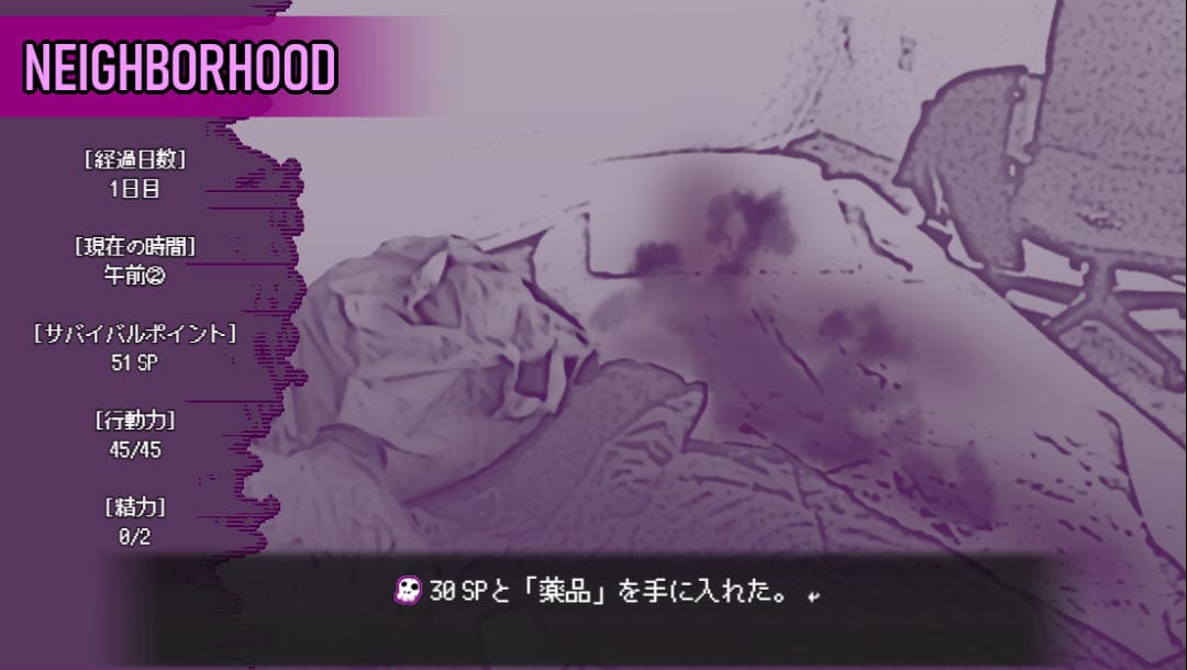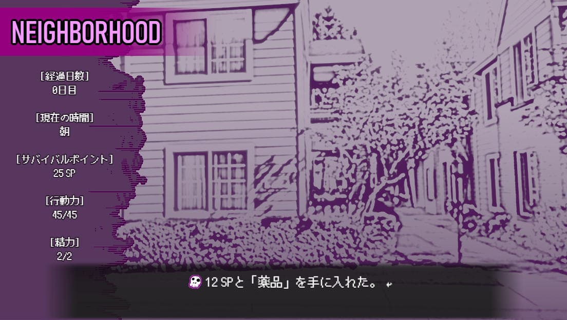 SP=サバイバルポイントは食事、戦闘、アイテム購入、ワクチン生成など様々な行動で必要なためSP収集は非常に重要な要素となっている。SPは探索の他、戦闘、イベント、実績解放等で得られる。