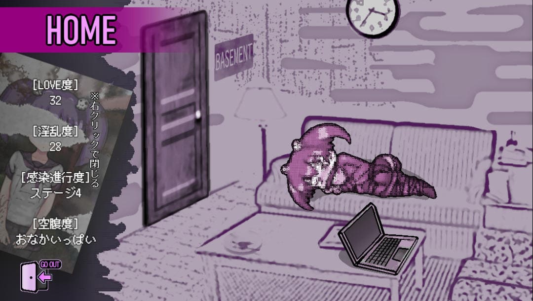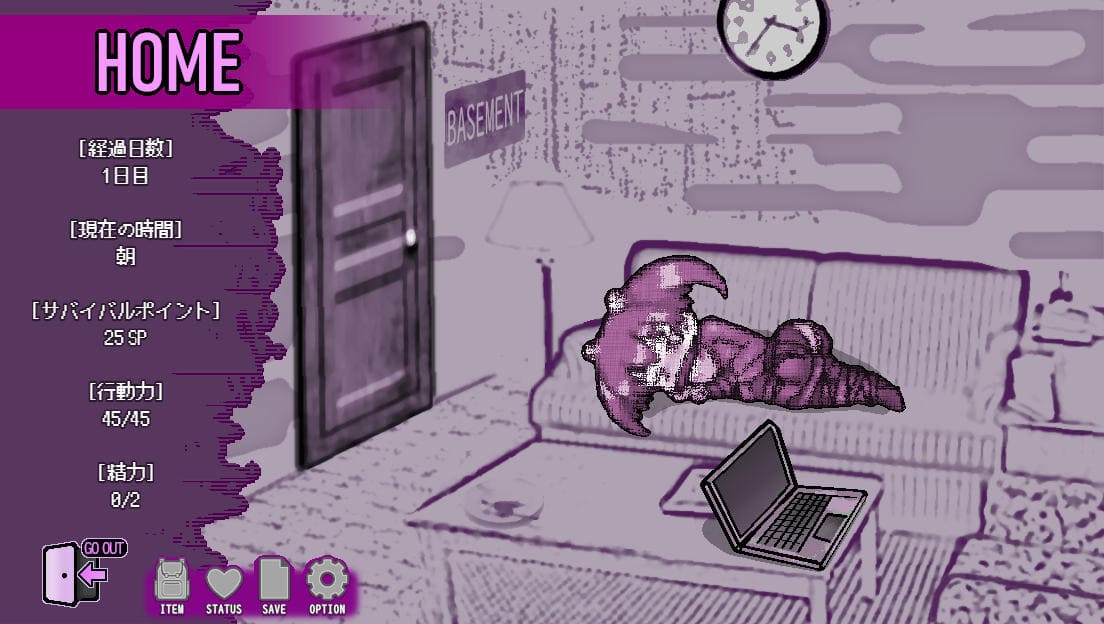 でだ、ワクチン素材や物資を集めるには探索が必要だ。拠点画面の左下「GO OUT」と書かれた扉アイコンをクリックすればいつでも探索に出られる。