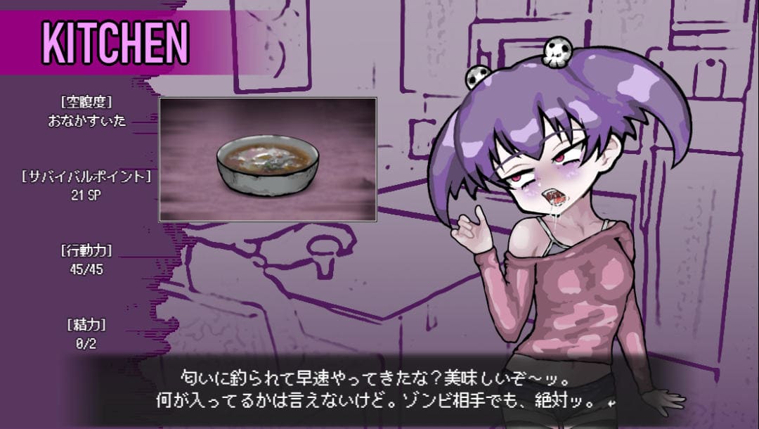 その後は拠点を中心としてサバイバル&ゾンビ育成生活が始まる。