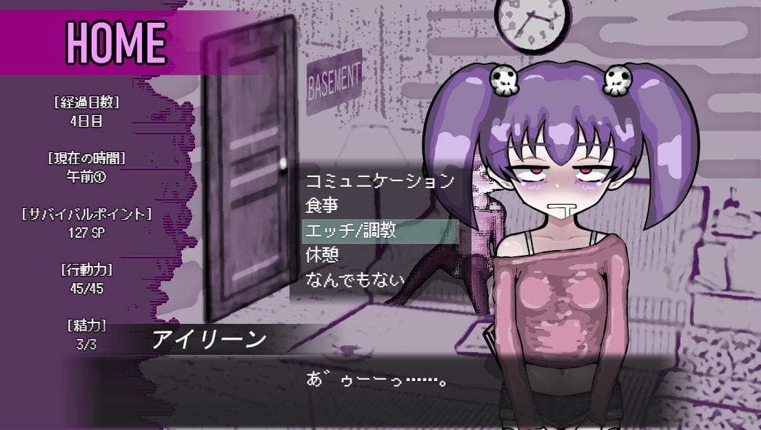 拠点ではアイリーンと風呂やエロなどコミュニケーションしたり、ご飯を食わせたりなどなど。