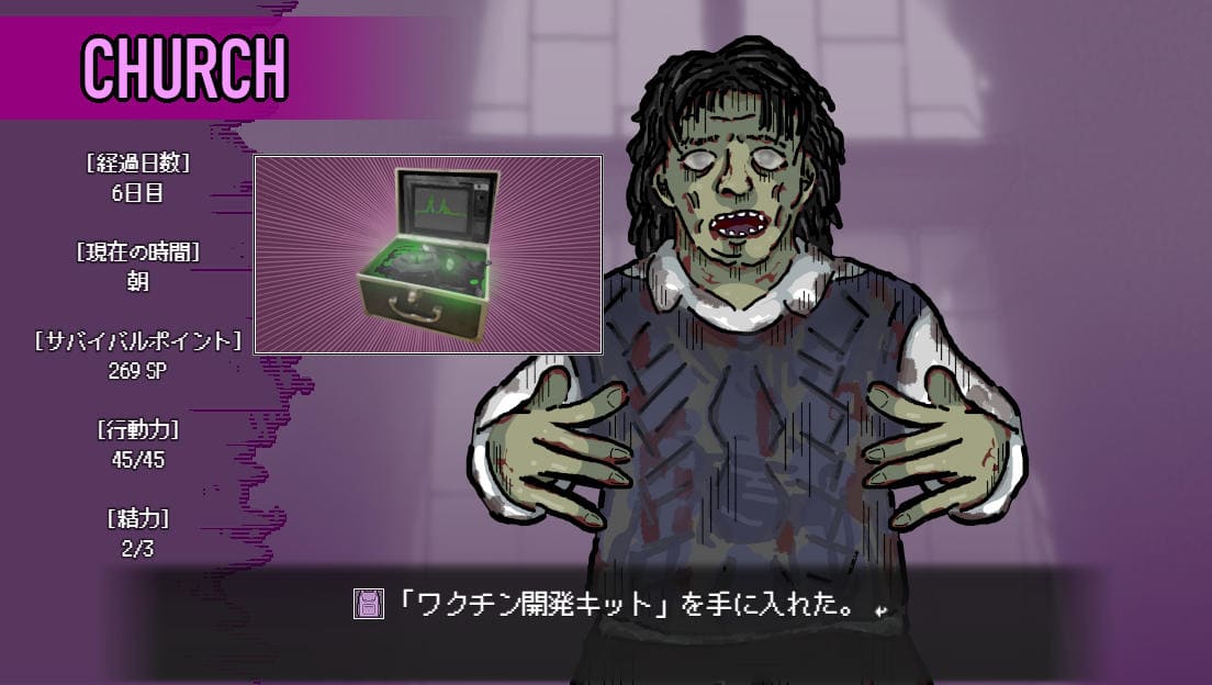 ▲噛まれて1日経過するが主人公はゾンビ化しなかった。体内で抗体が作られたのか(?)