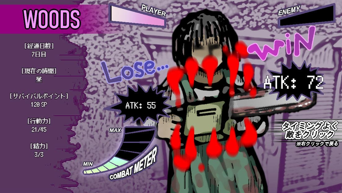 ▲画面左下の「コンバットメーター」が高速で上下、目押しクリックでATKが決まる