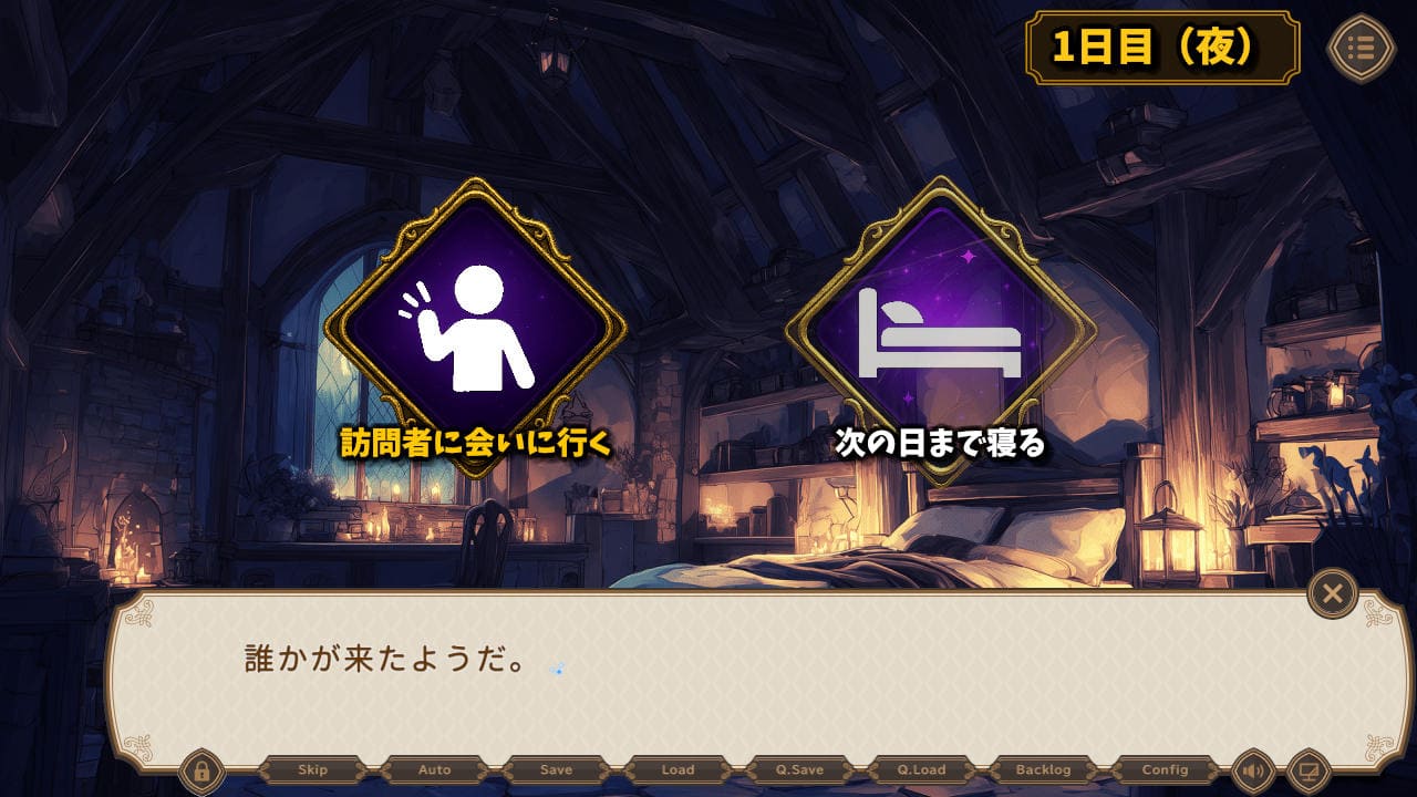 客を泊めるフェーズではこれを3人分行う。この段階で魔女かどうかを判断するのは無理、よって質問に関してはどちらを選ぼうが問題ないかと。まぁセーブ&ロード活用で簡単に両方聞けるけども。