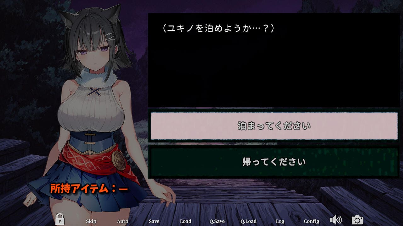 ▲条件を満たすと彼女が訪れどちらを選んでもGAMEOVERに。人間の客がいても彼女がくることがあるが、その場合は上の選択肢を選べばGAMEOVERを避けられる