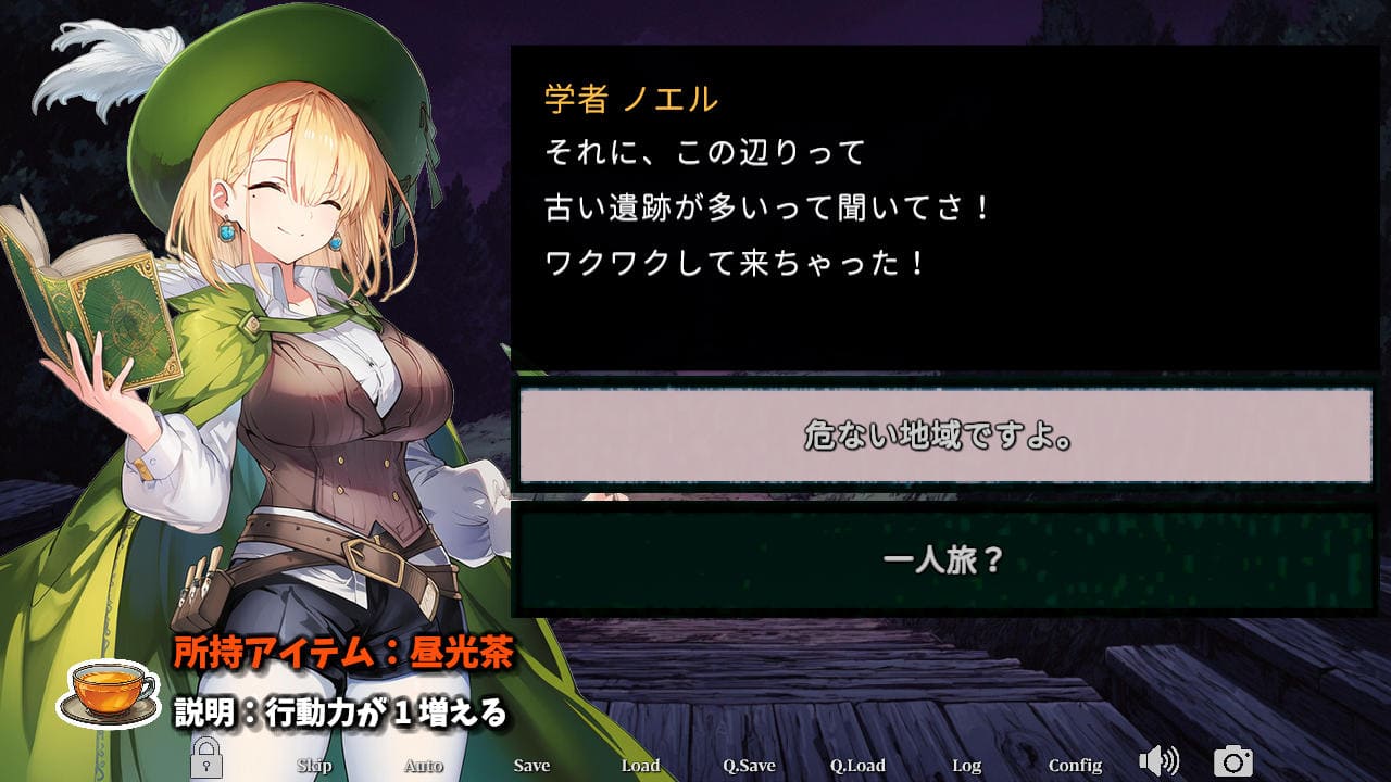 ▲三人目の客、ノエル。画面左下に所持アイテム名が表示された場合、宿泊させるとそのアイテムを入手できる
