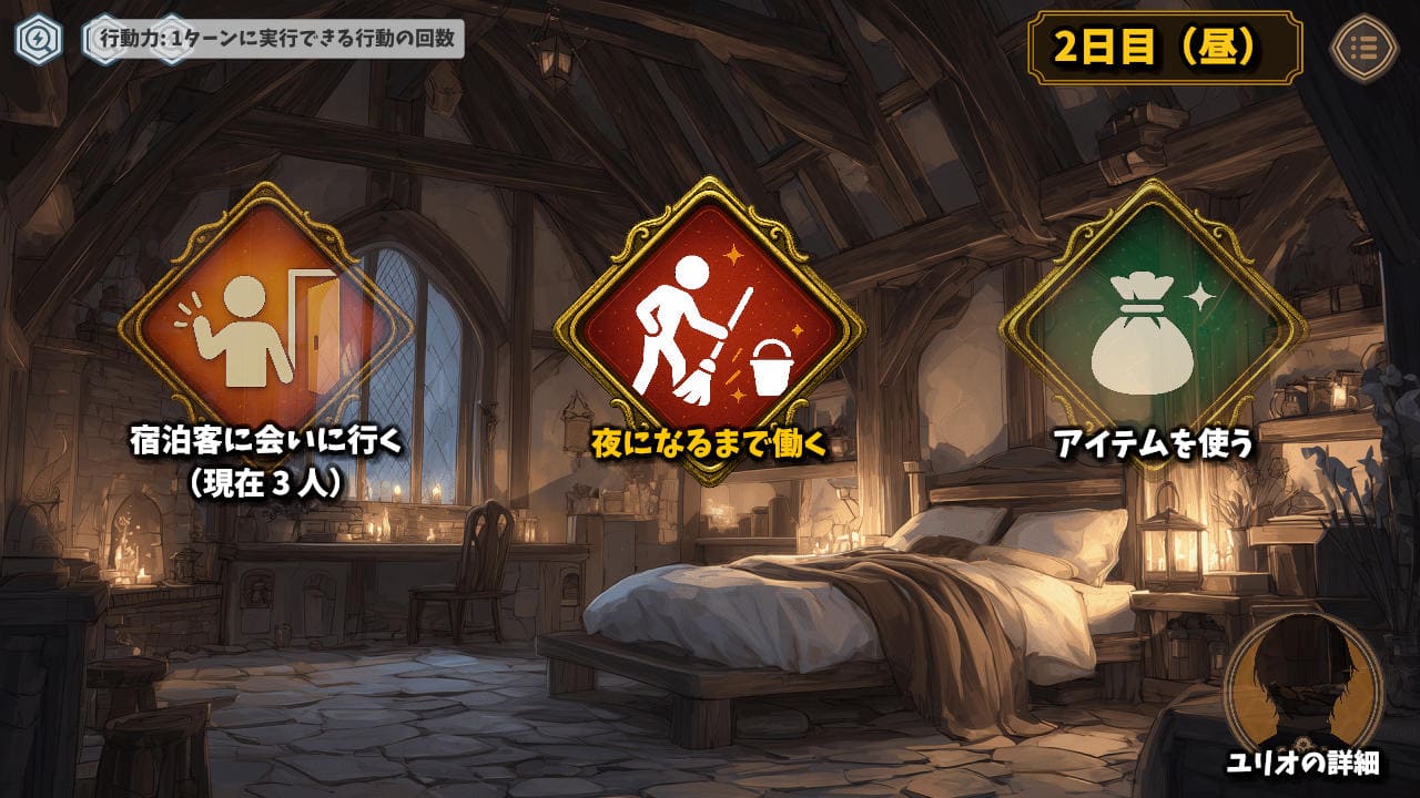 ちなみにGAMEOVERの条件は、宿泊客が全員魔女、または客が1人もいない場合だ。
