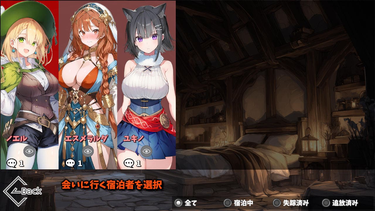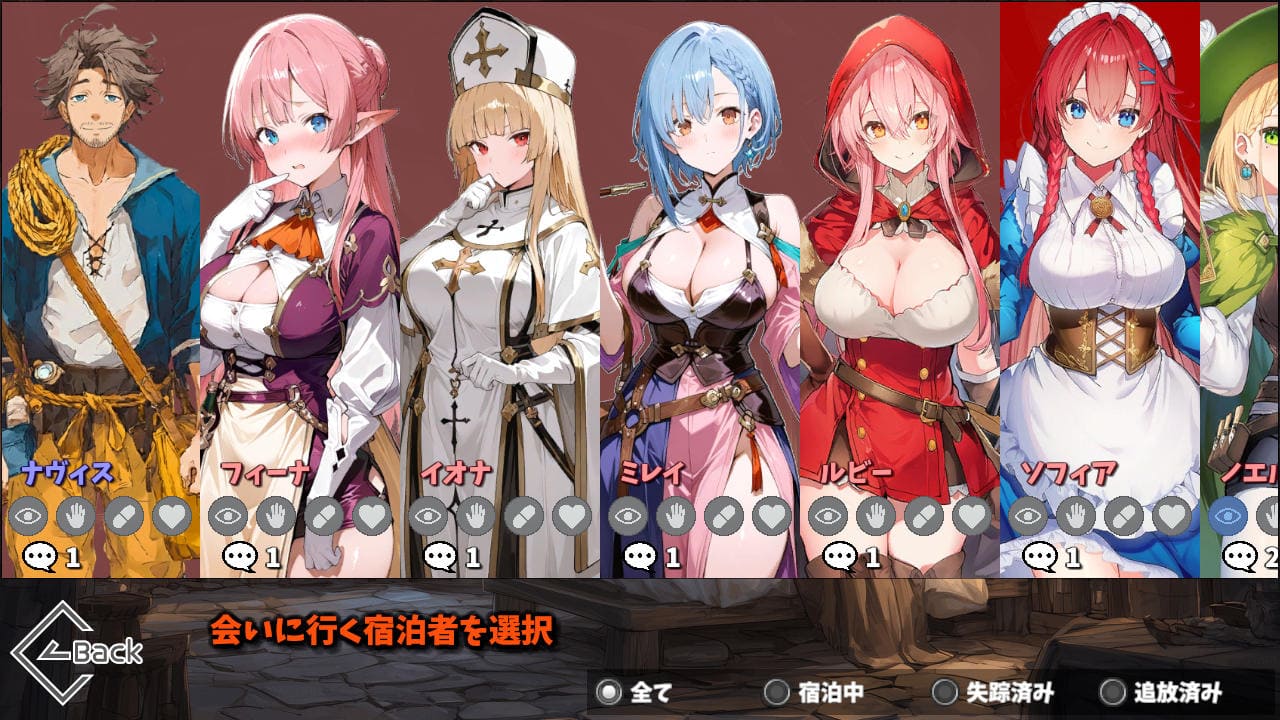 悩ましいのが、ヒロインが失踪すると当然そのヒロインとのエロができなくなる。だから魔女をガンガン追放していこう、でもそうすると魔女とエロができなくなる、ということ。お目当てのヒロインがいたり、エロメインでいくならぶっちゃけ誰も追放せずに進める方が捗るだろう。ガチ攻略はそれからでもよかろう、そんなゲーム設計じゃなかろうか。