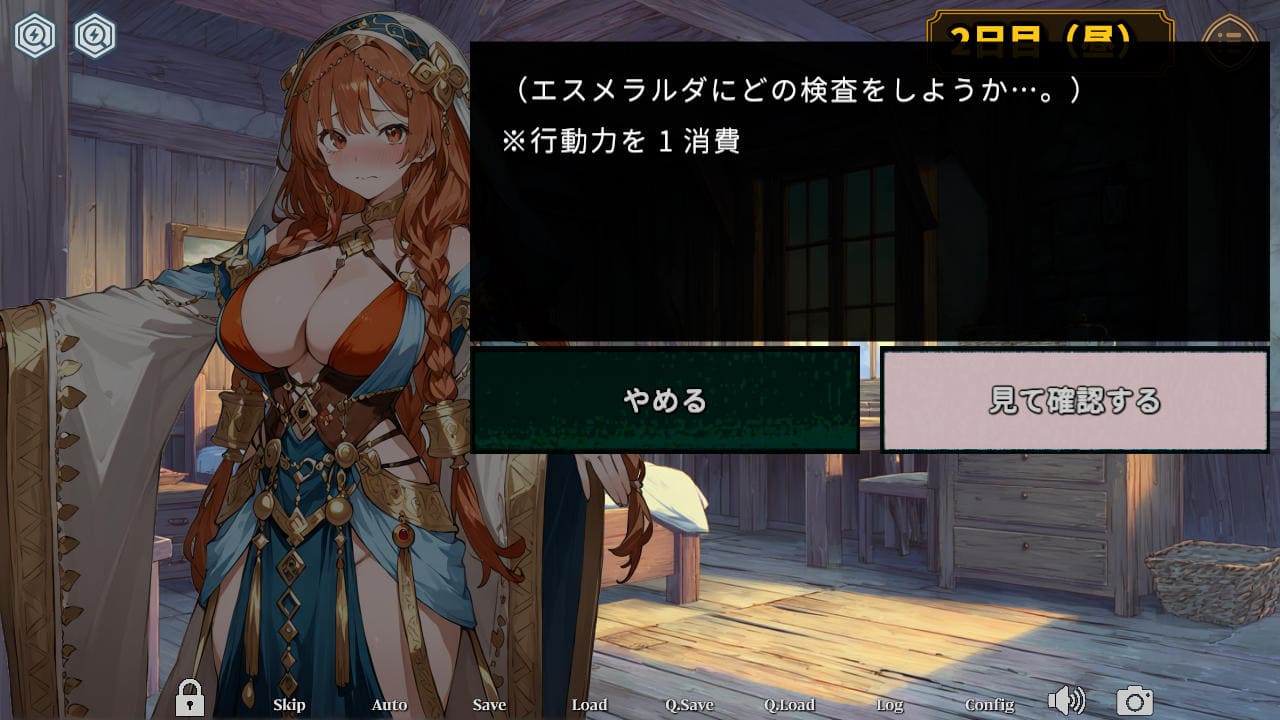 ▲まだ2日目なので「視姦」しか選べない。5日目にはエロ項目が4つまで増える
