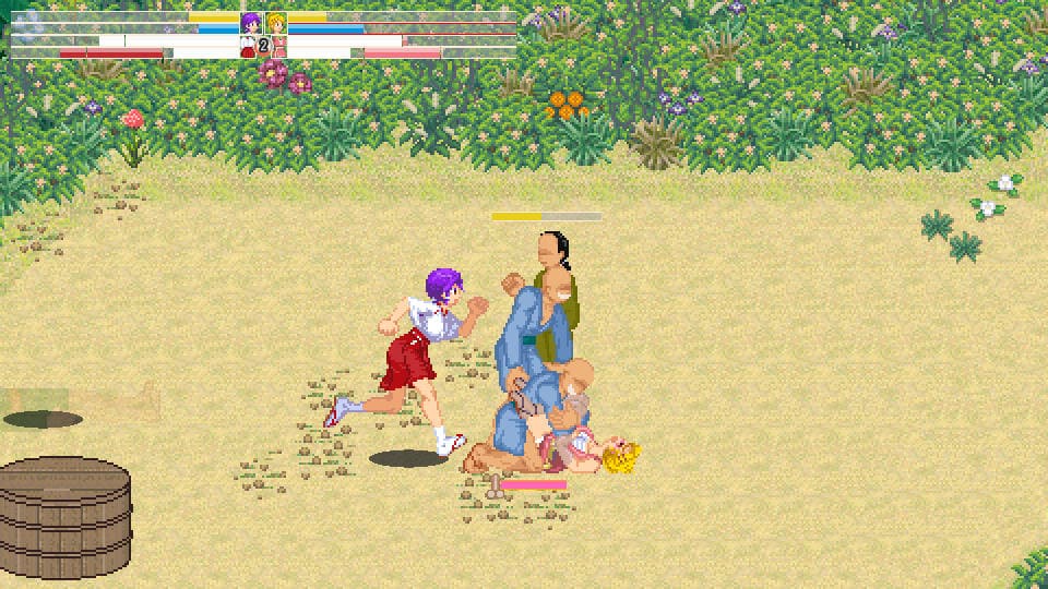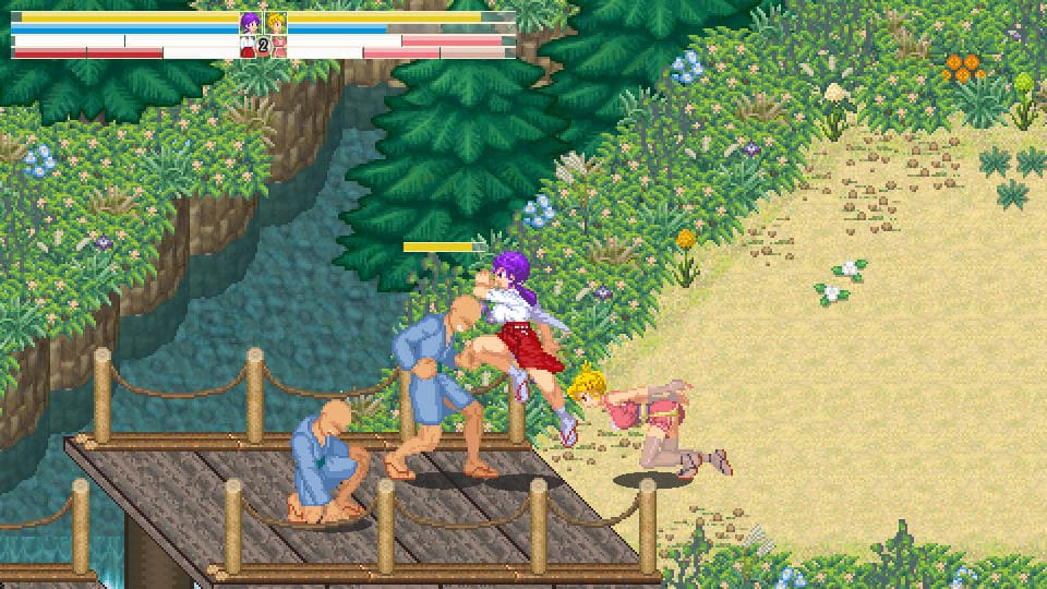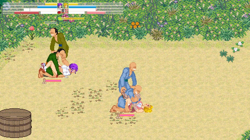 敵には「拘束」「拘束セクハラ」「エロ(挿入)」の3つの拘束攻撃があり、まずは「拘束」から入る。拘束状態がしばらく続くとセクハラやエロに発展する。基本的にレバガチャで脱出するできるが「エロ」まで発展してしまうと、残り気力にもよるが脱出には相当な連打力が必要、無理目。ゆえにエロられてない方で助けるのが定石。