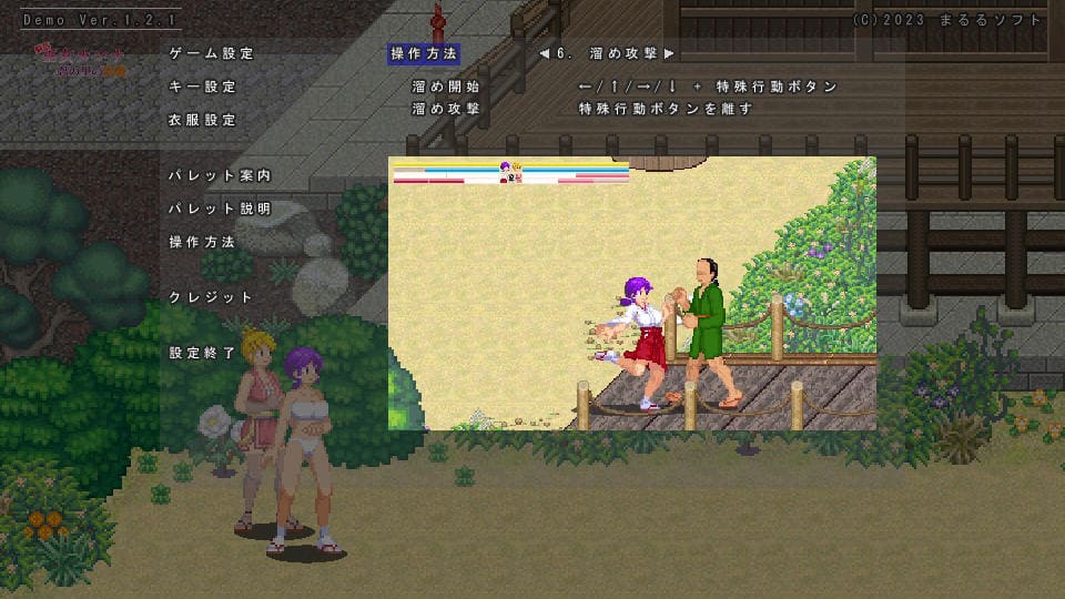 特に気に気持ちええのが、↑キー押しながらのZキー連続攻撃からの打ち上げ。最後の攻撃で敵を空中に浮かせ、ジャンプ攻撃や前ダッシュ→連続攻撃で拾うなども可能。