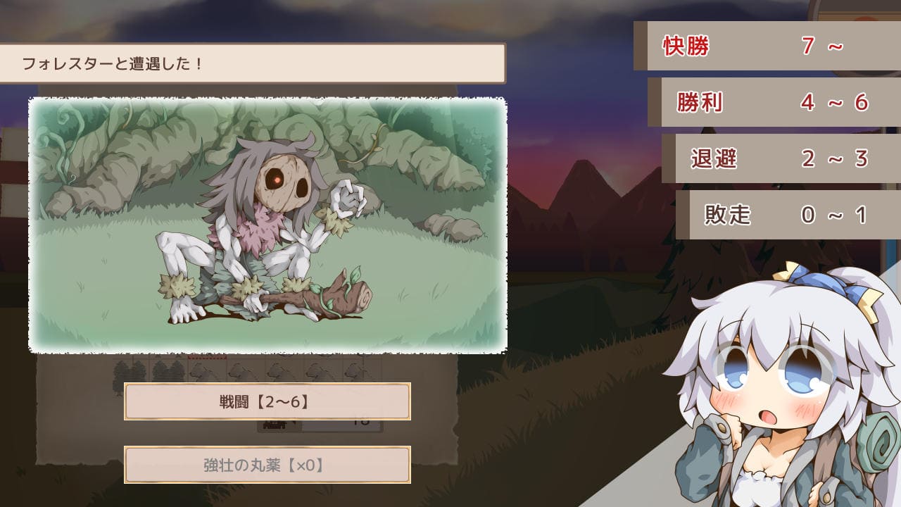 魔物はいるものの基本的に平和で牧歌的な世界観、命のやり取りやシリアスな展開は皆無(少なくとも体験版範囲では)で、道中は全体的にユルく優しい雰囲気(とエロ)に満ちた旅となる。サークルさんのもちぷにっとしたキャラ造形にも合っており癒し効果あり。