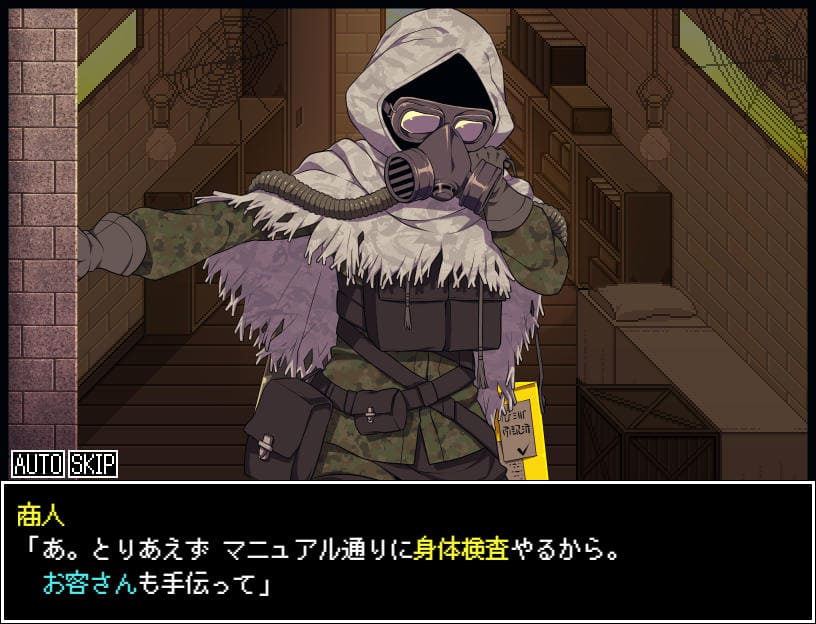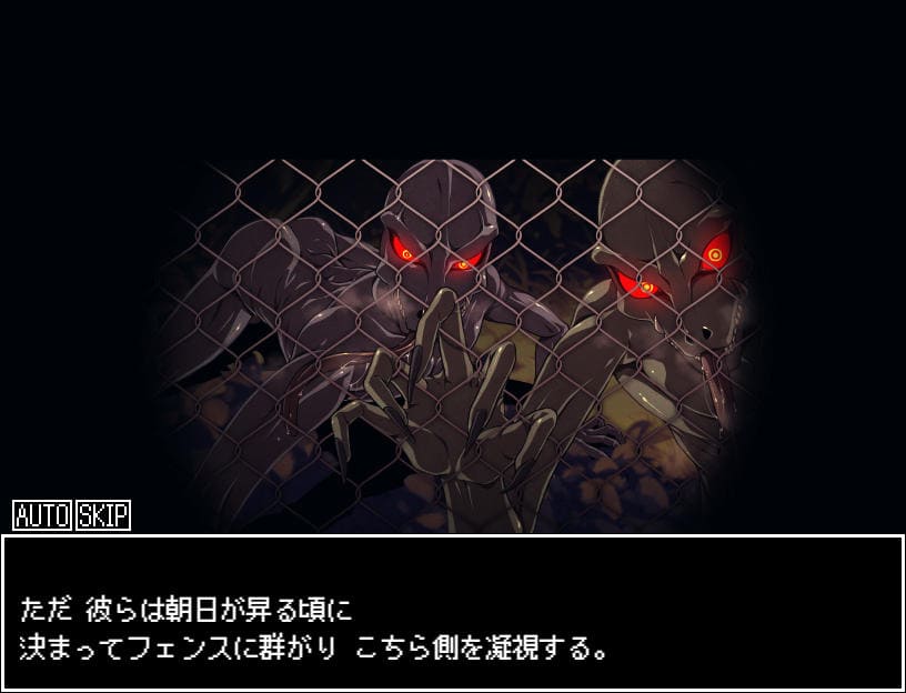 日の出と共にわらわらと国境の「フェンス」に集まってくる「トカゲ人間」を威嚇射撃で追っ払うお仕事をしている主人公(名前任意)が、フェンスの向こう側から来て「要救助者」として匿った佐谷霞巳(さたにかすみ)と共に生活していくMZ製のSLG。