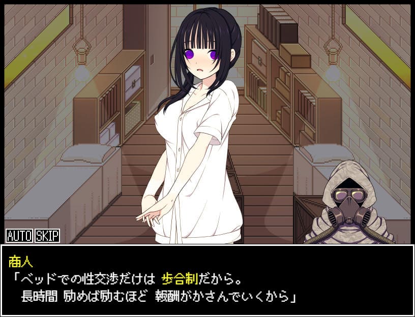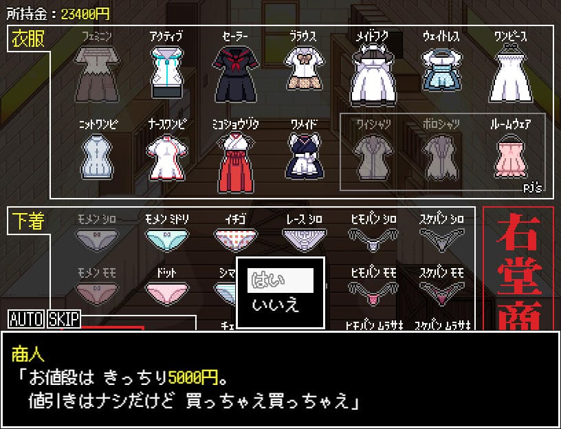 商人からはヒロインの衣装・下着類の他、エログッズ類も購入できる。衣装や下着は購入しておくとヒロインの許容範囲でランダムで着てくれる。最初の内はエッチなコスは着てくれない。メガネのON/OFFも任意でメガネスキーもそうでない紳士もにっこり。