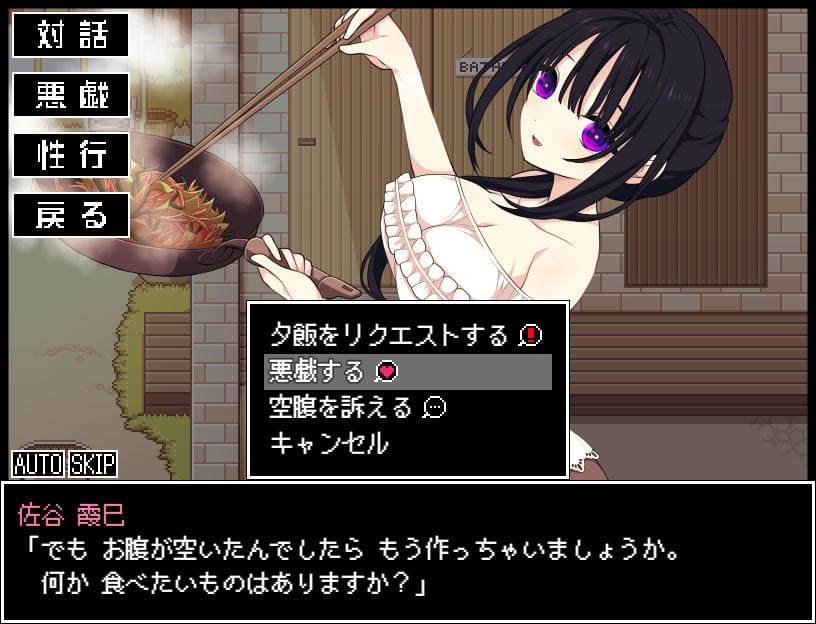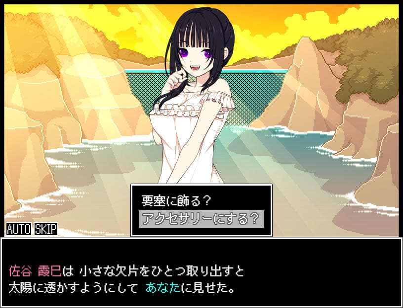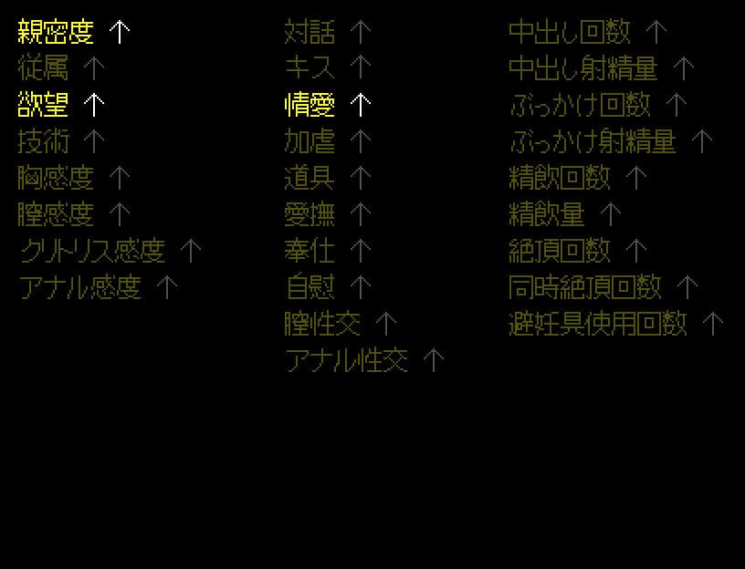 そんな凝った世界観とは裏腹にゲームとしては非常にシンプルな生活SLG。毎日ランダムで居場所が変わる佐谷霞巳ちゃんをクリック、日常イベントを見ていくことで様々なパラメータが上昇するが、その中でも最もフラグたるものが「親密度」だ。ヒロインは最初から主人公に対する好感度MAXだが、出会って早々股を開くようなキャラではない。分類は清楚、まぁ神社の娘で黒髪であるし(偏見