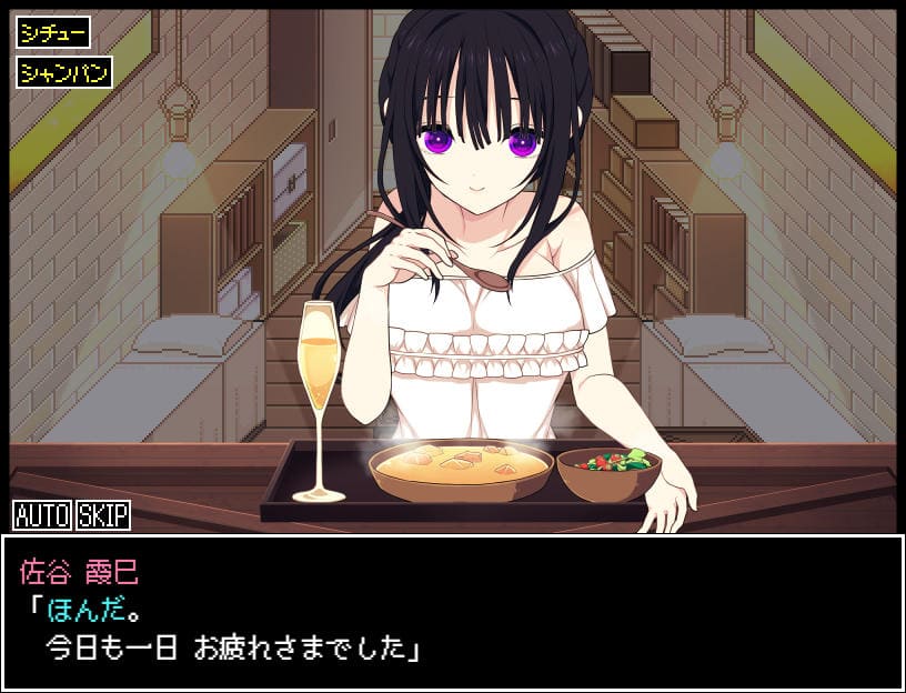 日常イベント後はヒロインとの夕食イベントとなり、そこで表示される料理と飲み物グラの多さにも感嘆する。料理について話したり、翌日のヒロインの居場所をランダムではなく指定することもできる。指定することで日常イベントを満遍なく拝見できる寸法。
