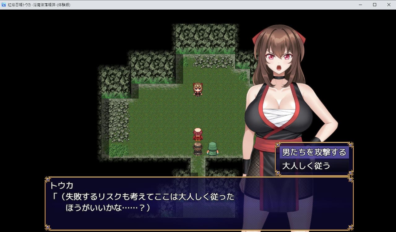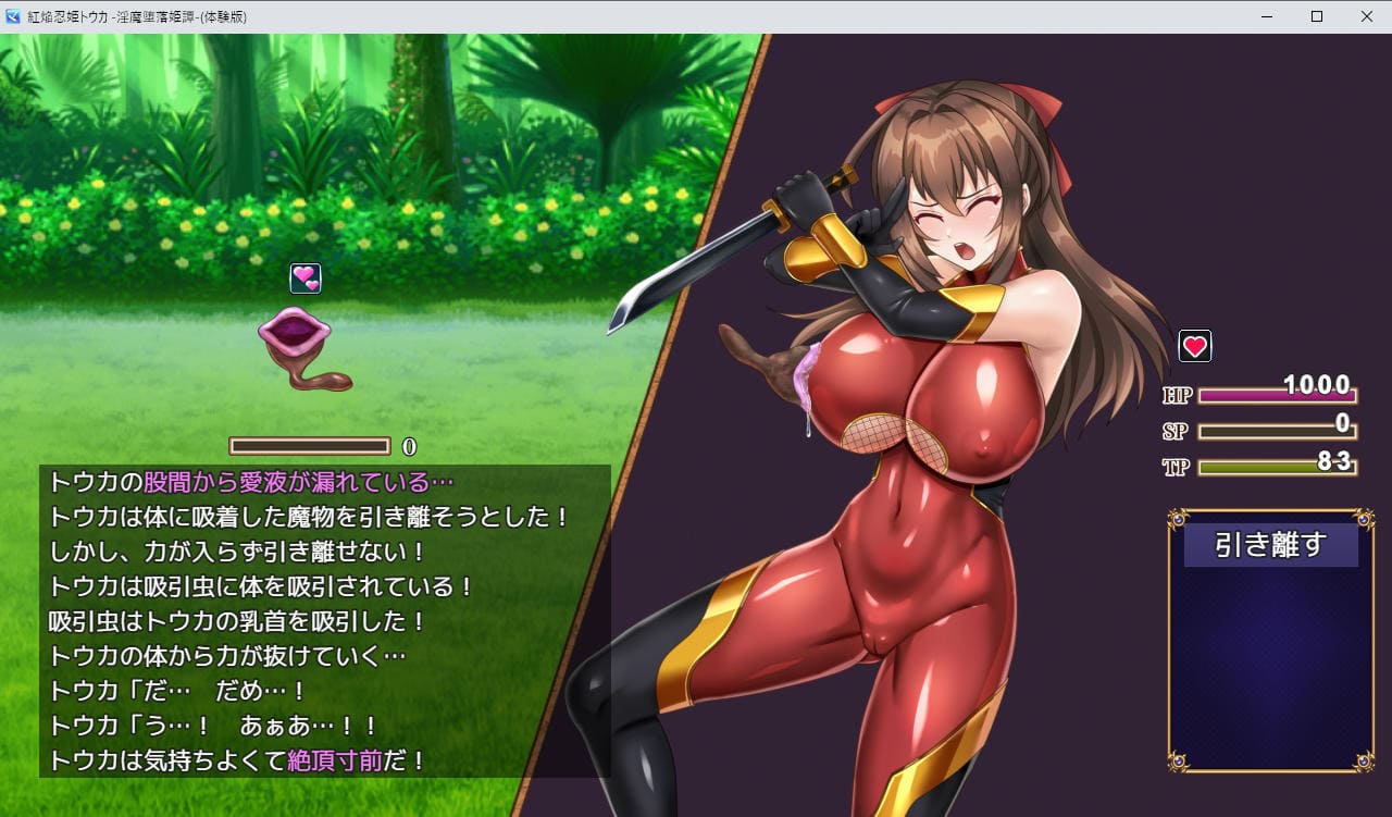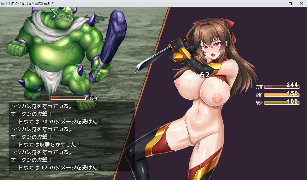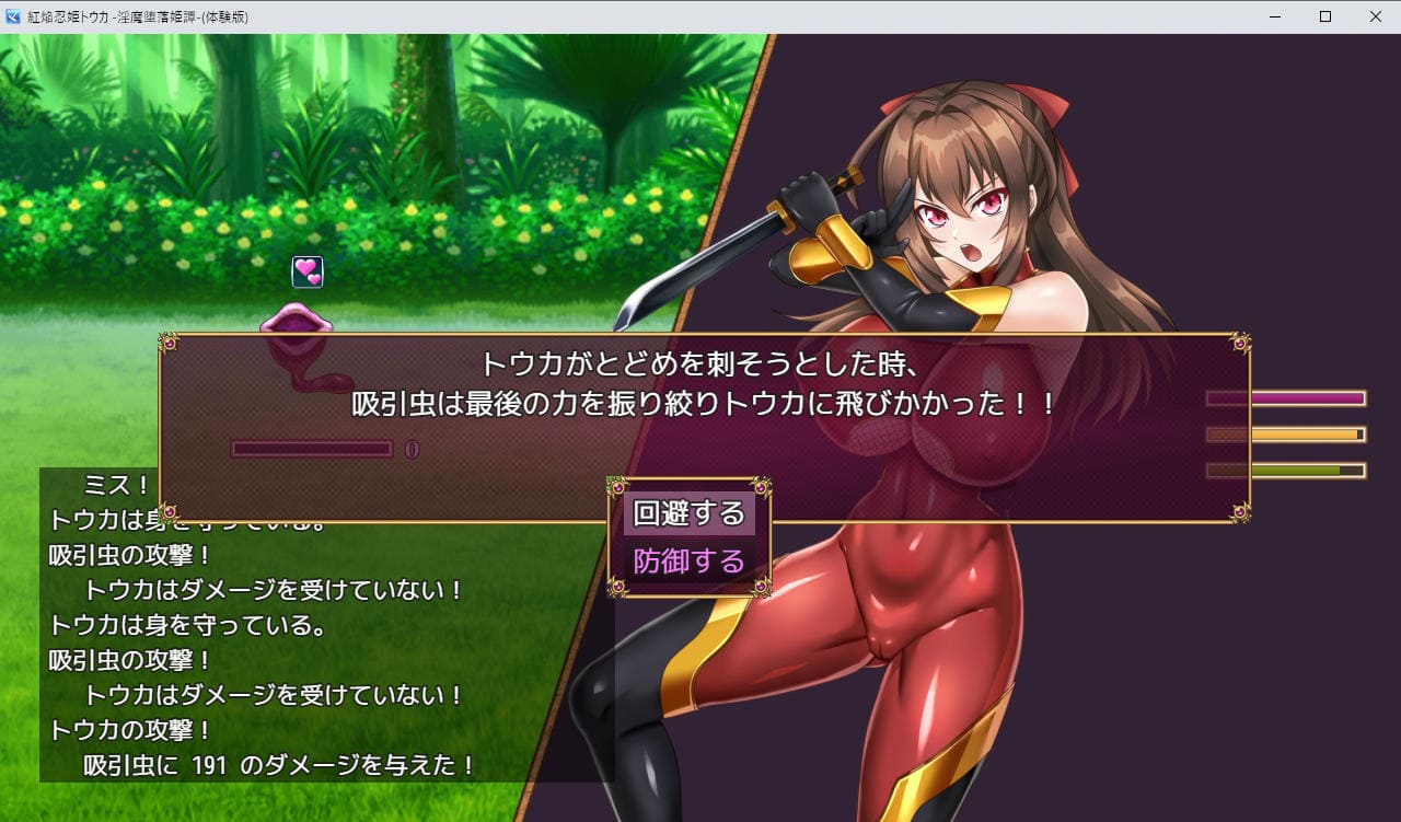 能動的に拝見可能なエロについては戦闘エロ、敗北エロがあるのだが特定の敵でのみ発生し数は少ないっぽい。体験版での戦闘エロは1種のみ、敗北エロは無かった。