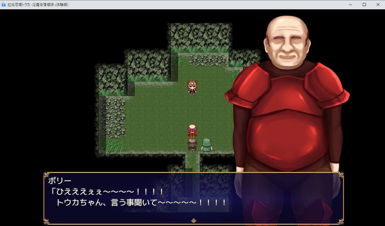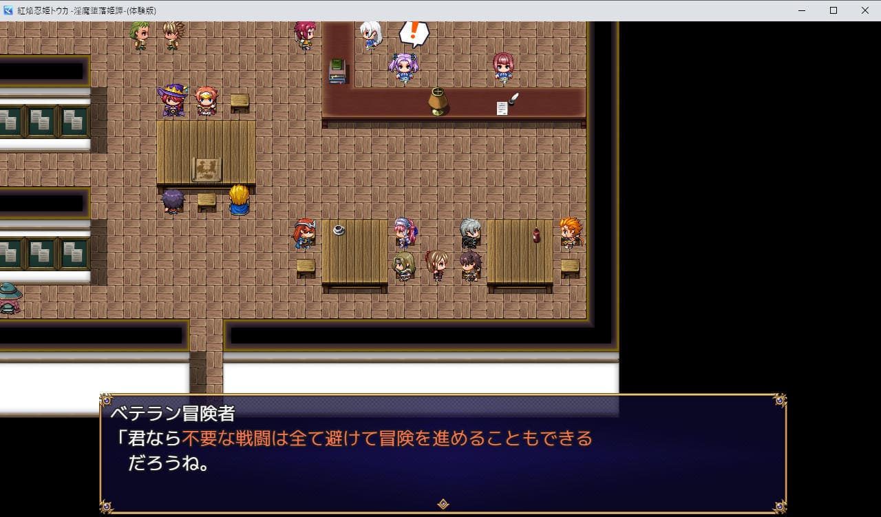 本作はエロイベントがほぼストーリー上で発生する一本道RPGである。ちょっと何を言っているのかわからんかもしれんが、読んで字の如くそのままの意味だ。一般的なエロRPGならNPC段階エロイベントとして実装される竿役達によるイベントすら、ストーリーイベントに組み込まれている。