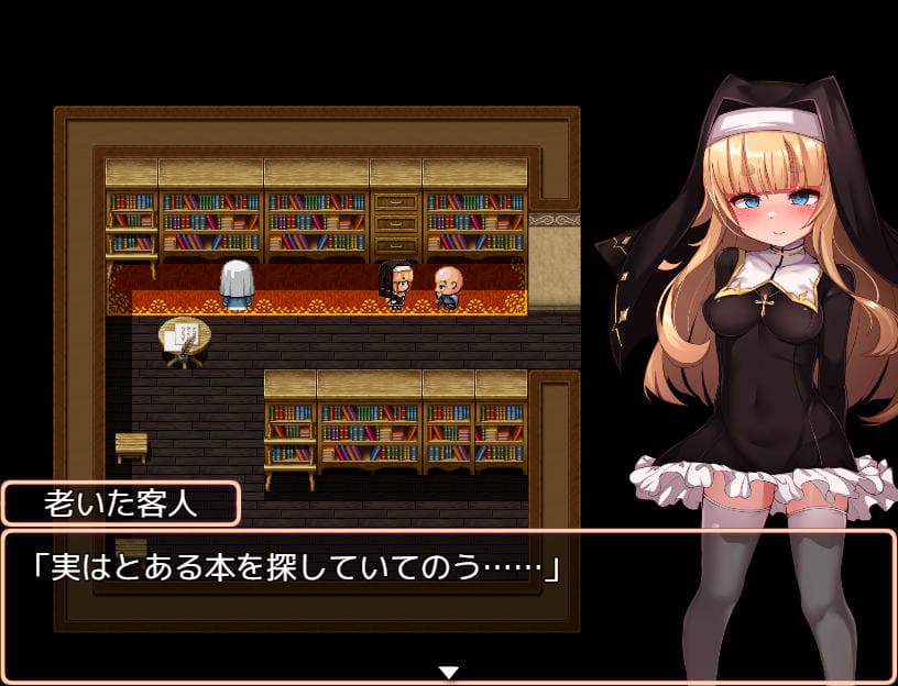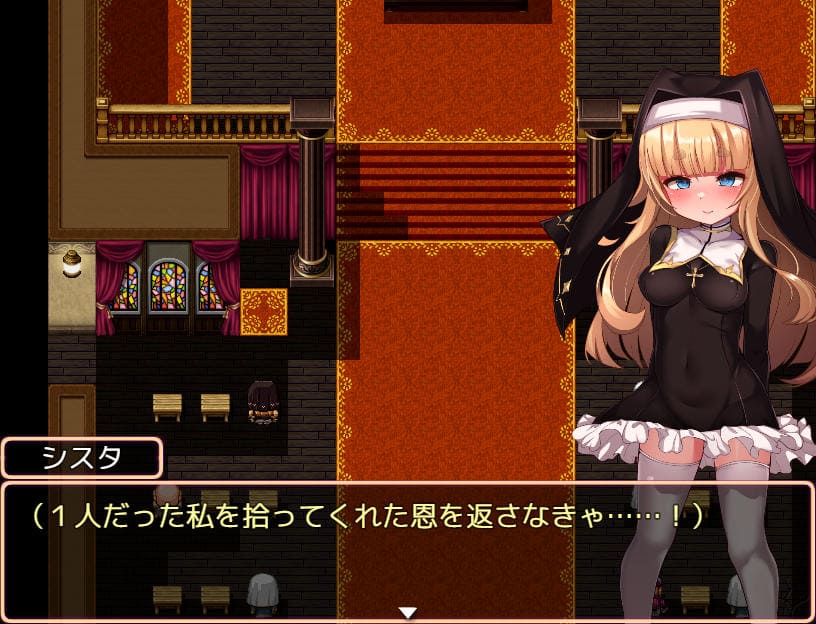 山奥にポツンと建つ教会の神父様に拾われ、シスター見習いとして務めるシスタが主人公のMV製の非戦闘RPG。拾われてから1ヶ月ほど経った頃、神父様から「特別な客人のお手伝いをしてほしい」と頼まれる。