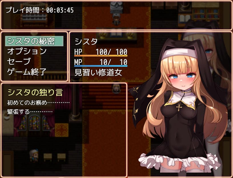 ▲メニュー画面。「シスタの独り言」がイベント終了ごとに変化するのが本作の楽しみの一つ