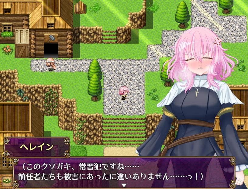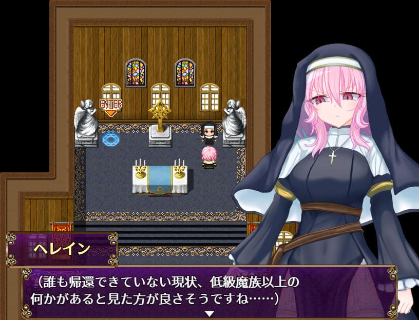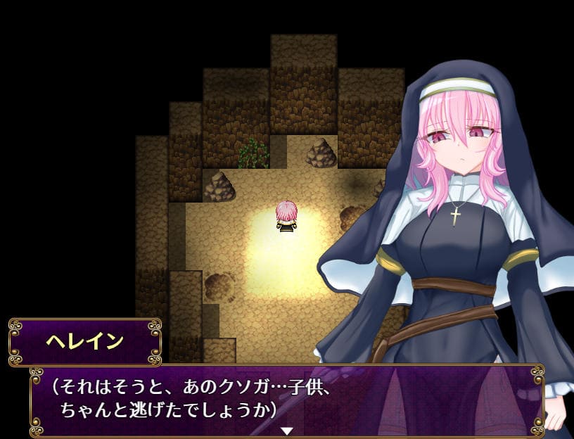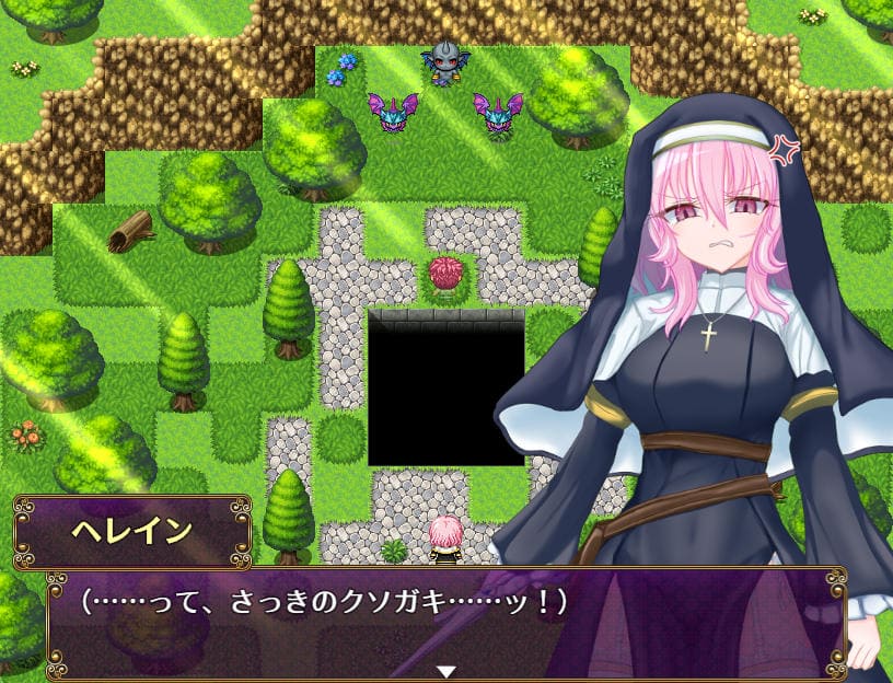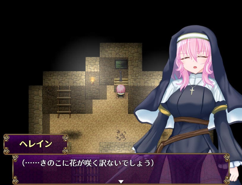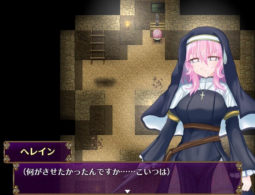 先に派遣された神官たちが悉く消息を絶ったという村の調査に向かう教団最強の退魔神官・ヘレインが主人公、エロトラップだらけの遺跡から脱出するべく奮闘するMV製の非戦闘RPG。