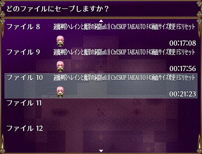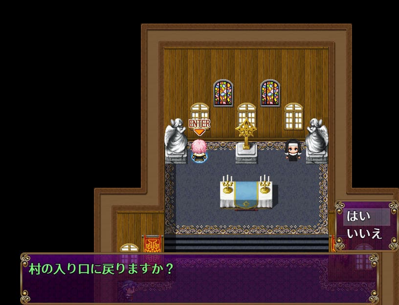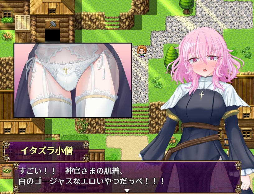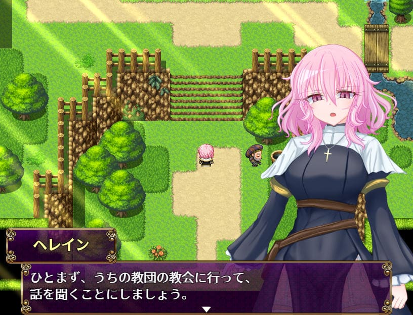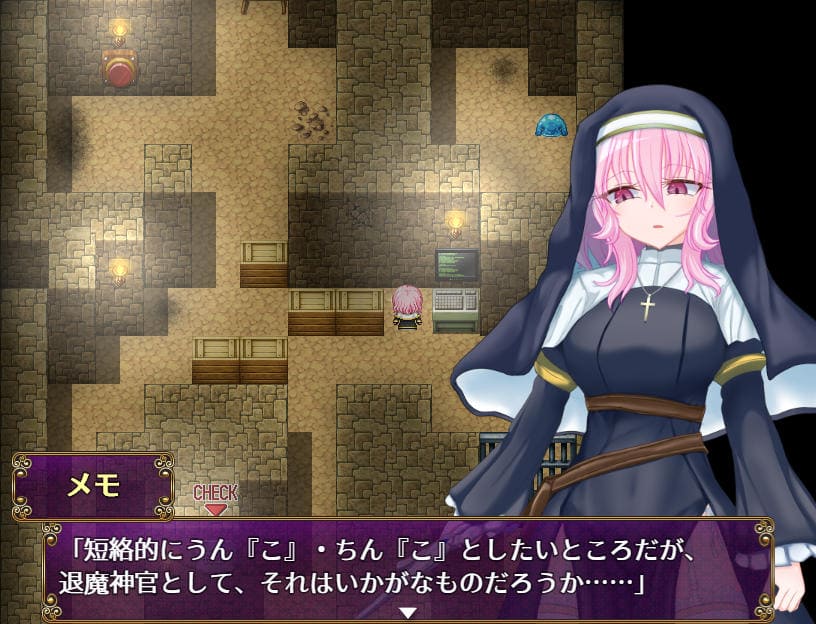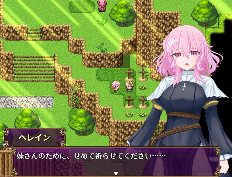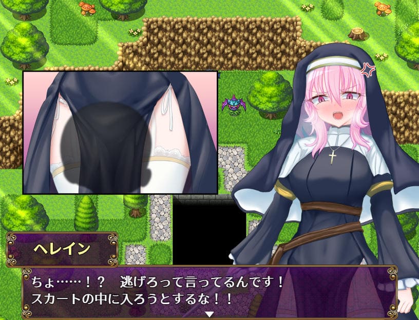 先に派遣された神官たちが悉く消息を絶ったという村の調査に向かう教団最強の退魔神官・ヘレインが主人公、エロトラップだらけの遺跡から脱出するべく奮闘するMV製の非戦闘RPG。