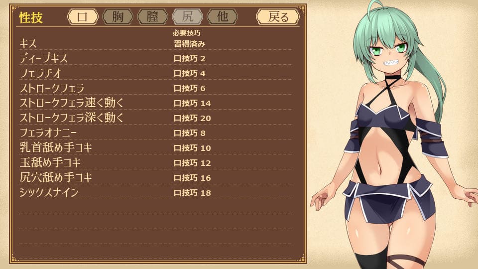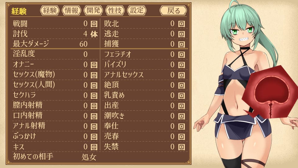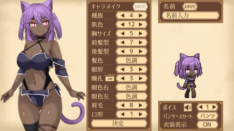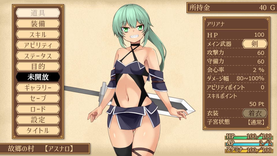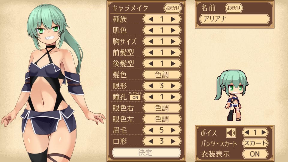 このキャラメイクは完全に見た目だけの設定で能力値やストーリーには影響しない。ただエロは全てこの見た目がベースとなるため重要だが、この設定は後から任意で弄れるゆえ適当でおけ。