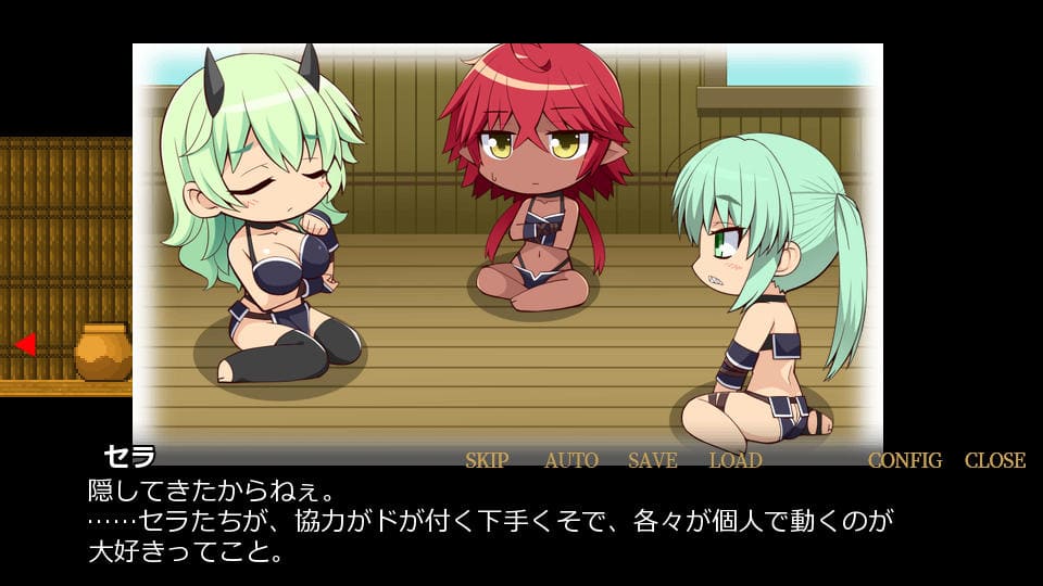 ▲主人公の家で作戦会議中。立ち絵はわかるが、主人公のデフォルメ絵まで当然のように用意されているのは一体どういう仕組みなんだ…