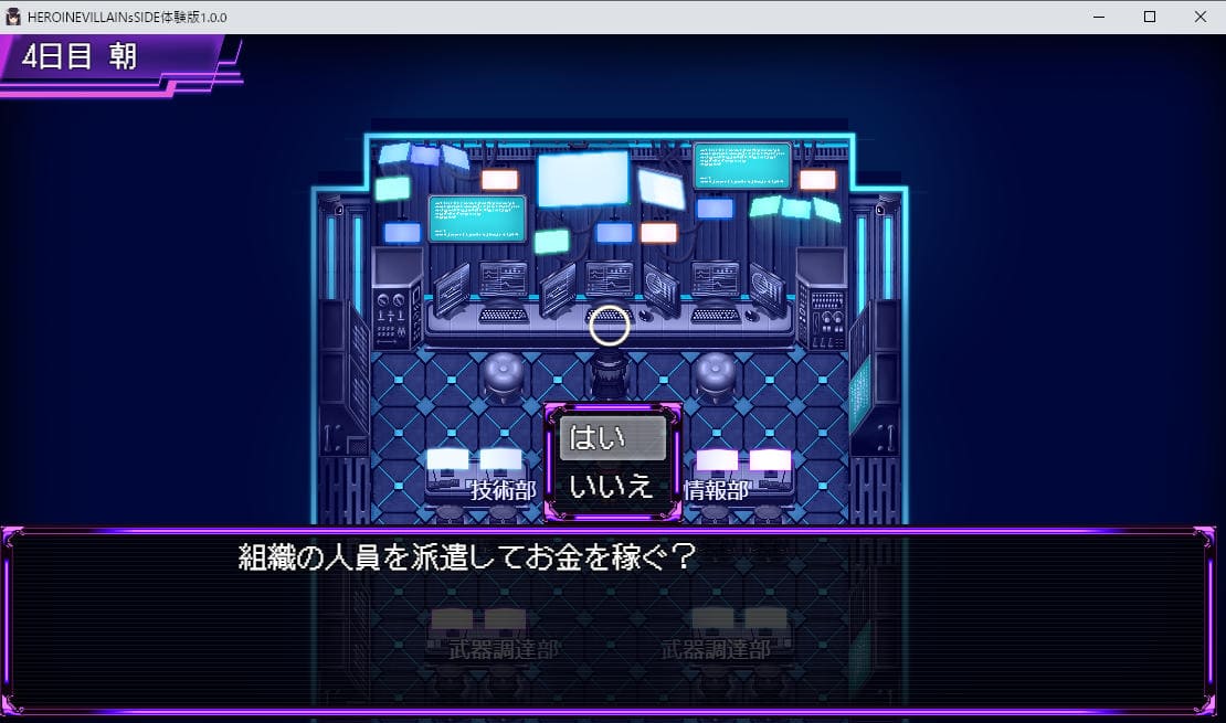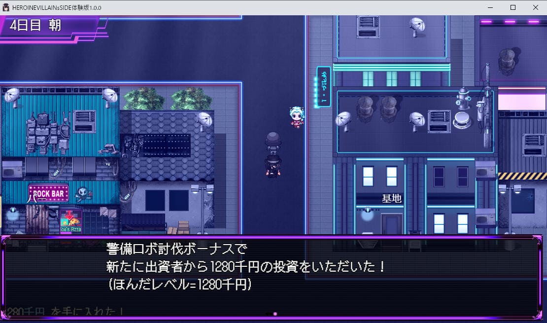 正義のヒロインは3人、彼女達はいずれも強く復活したばかりの主人公だけでは歯が立たない。様々な金策を実行し得たお金で怪人を作り、レベルアップさせてヴィランPTを強化していこう。